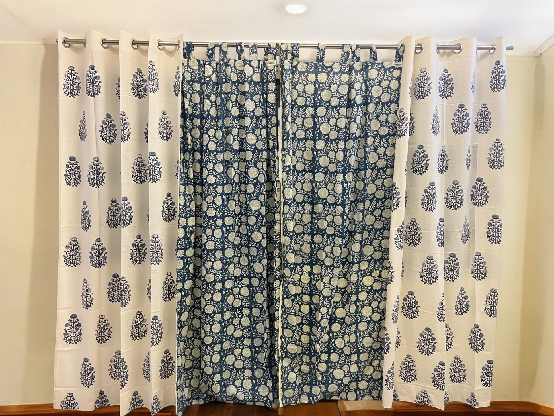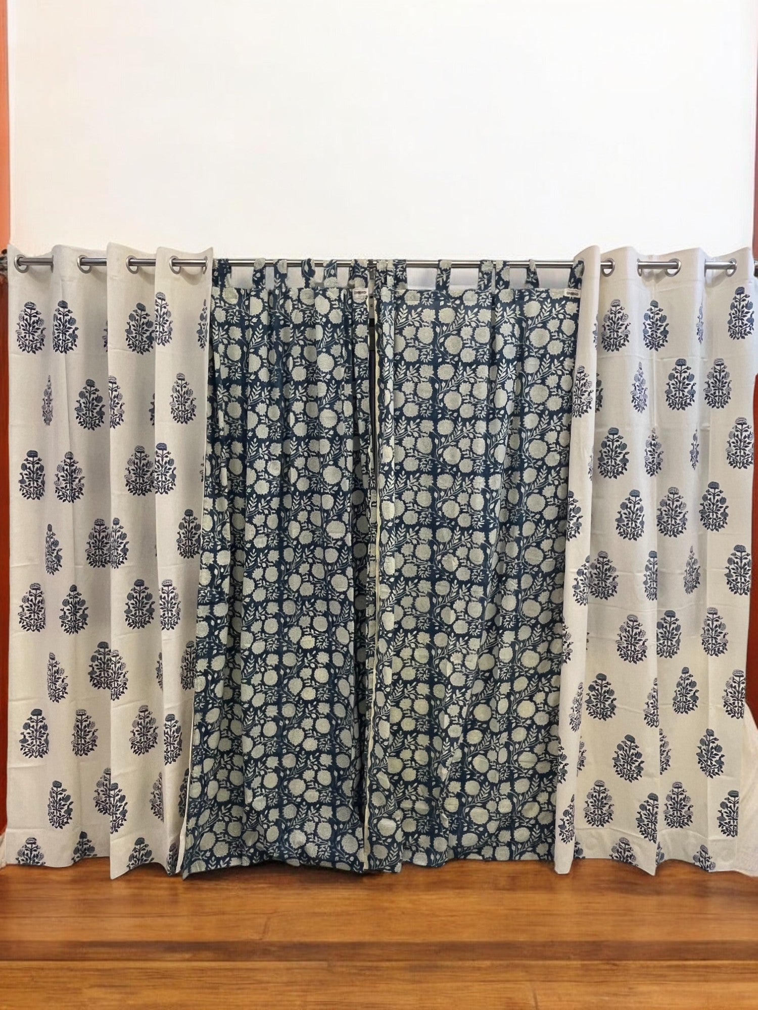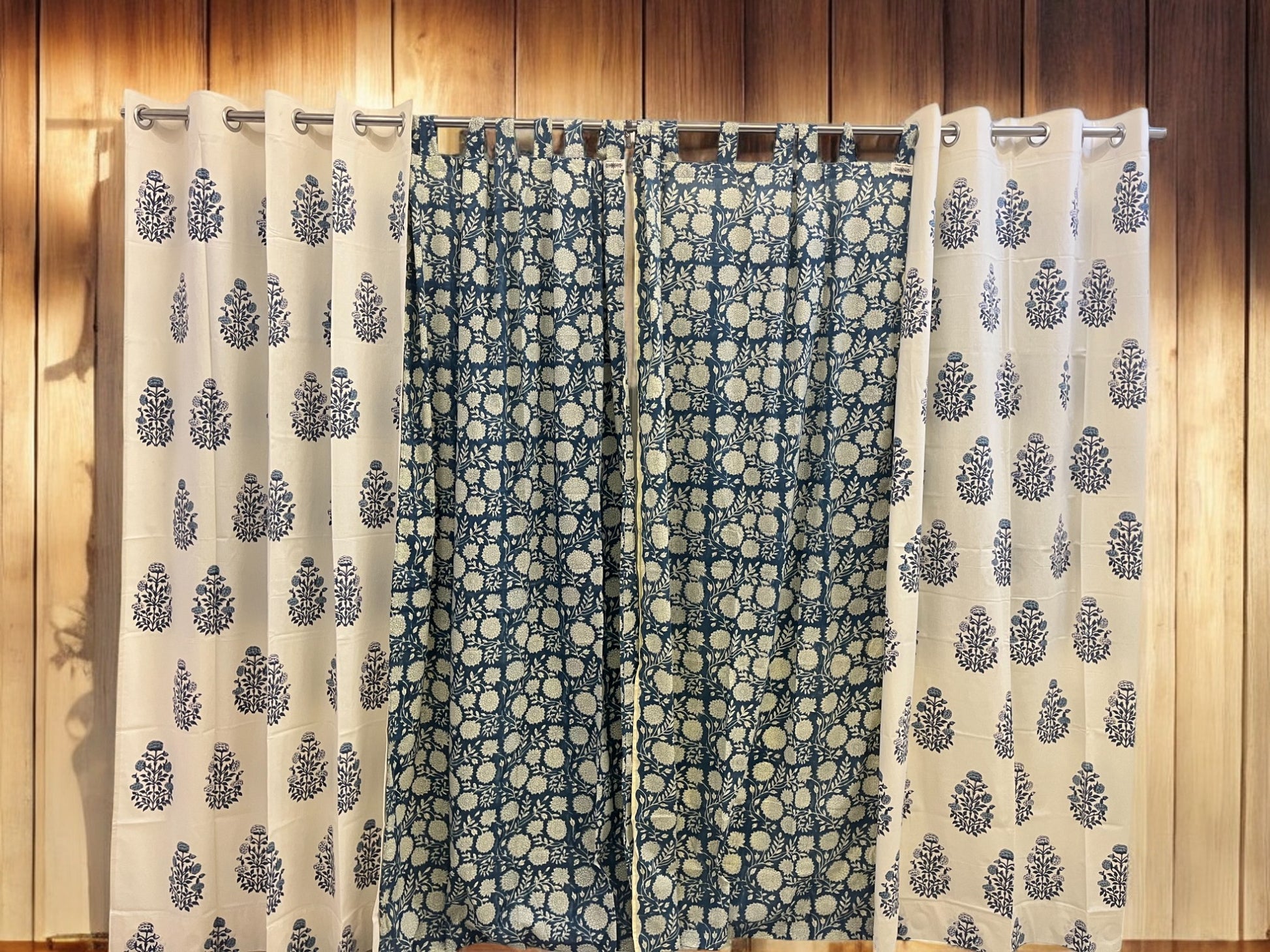 Elevate your home decor with our stunning Royal Blue Hand Block Curtain Set of 2. Crafted with precision and featuring a unique hand block print, these curtains will add a touch of elegance and sophistication to any room. Enhance your living space and enjoy the benefits of privacy, light control, and a beautiful aesthetic.