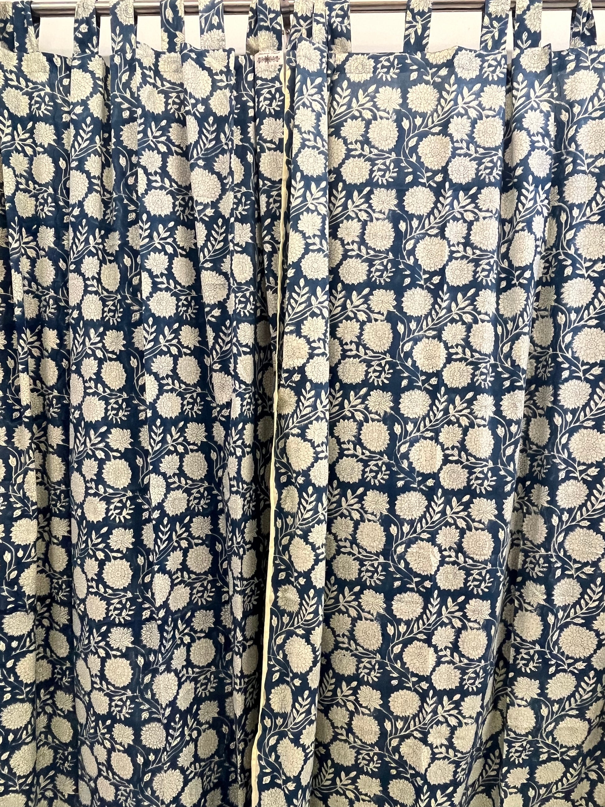 ROYAL BLUE HAND BLOCK CURTAIN SET OF 2