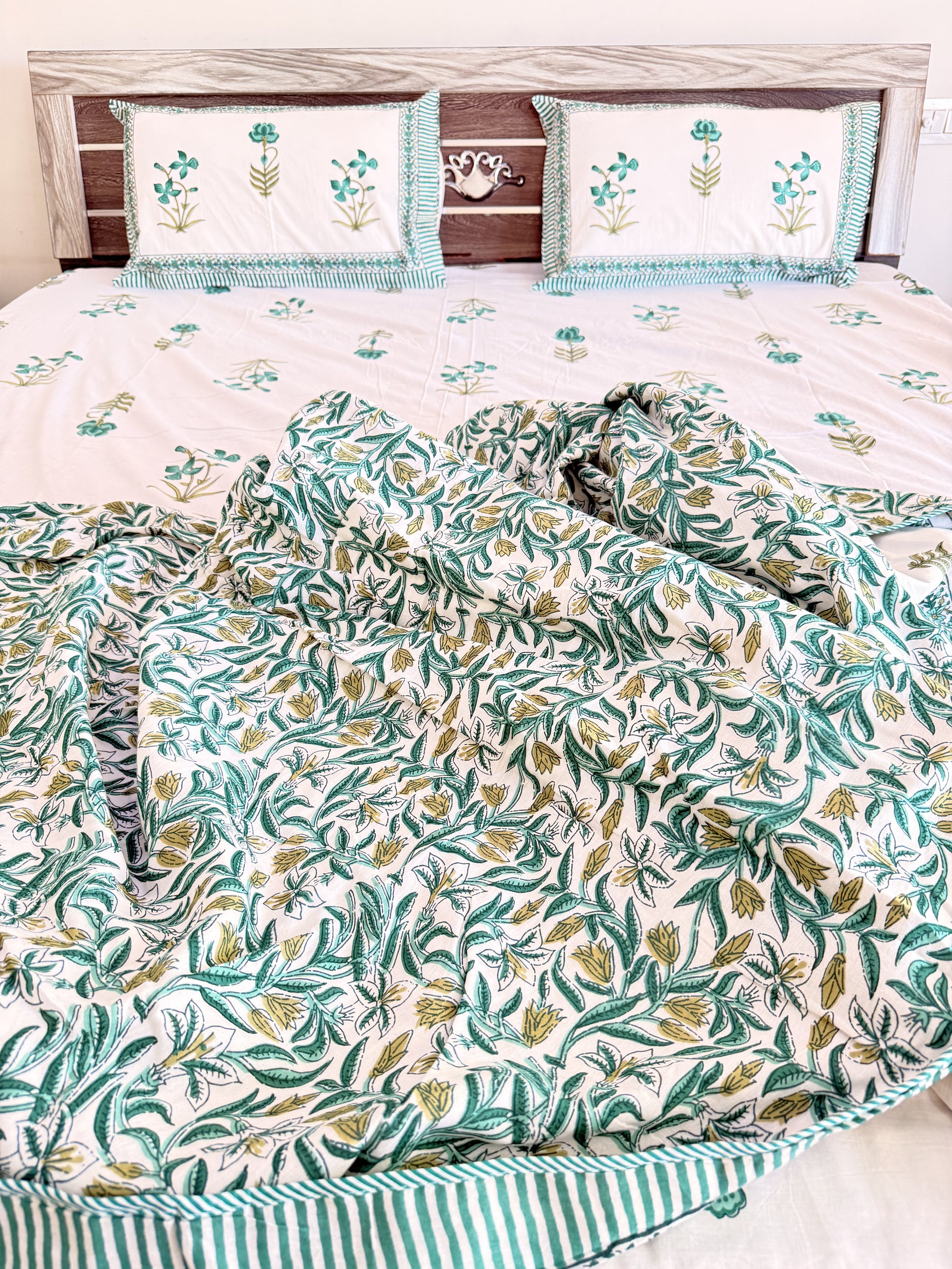 Wrap yourself in the comfort of tradition with this exquisite handmade dohar bedsheet set, a perfect blend of artistry, softness, and durability!