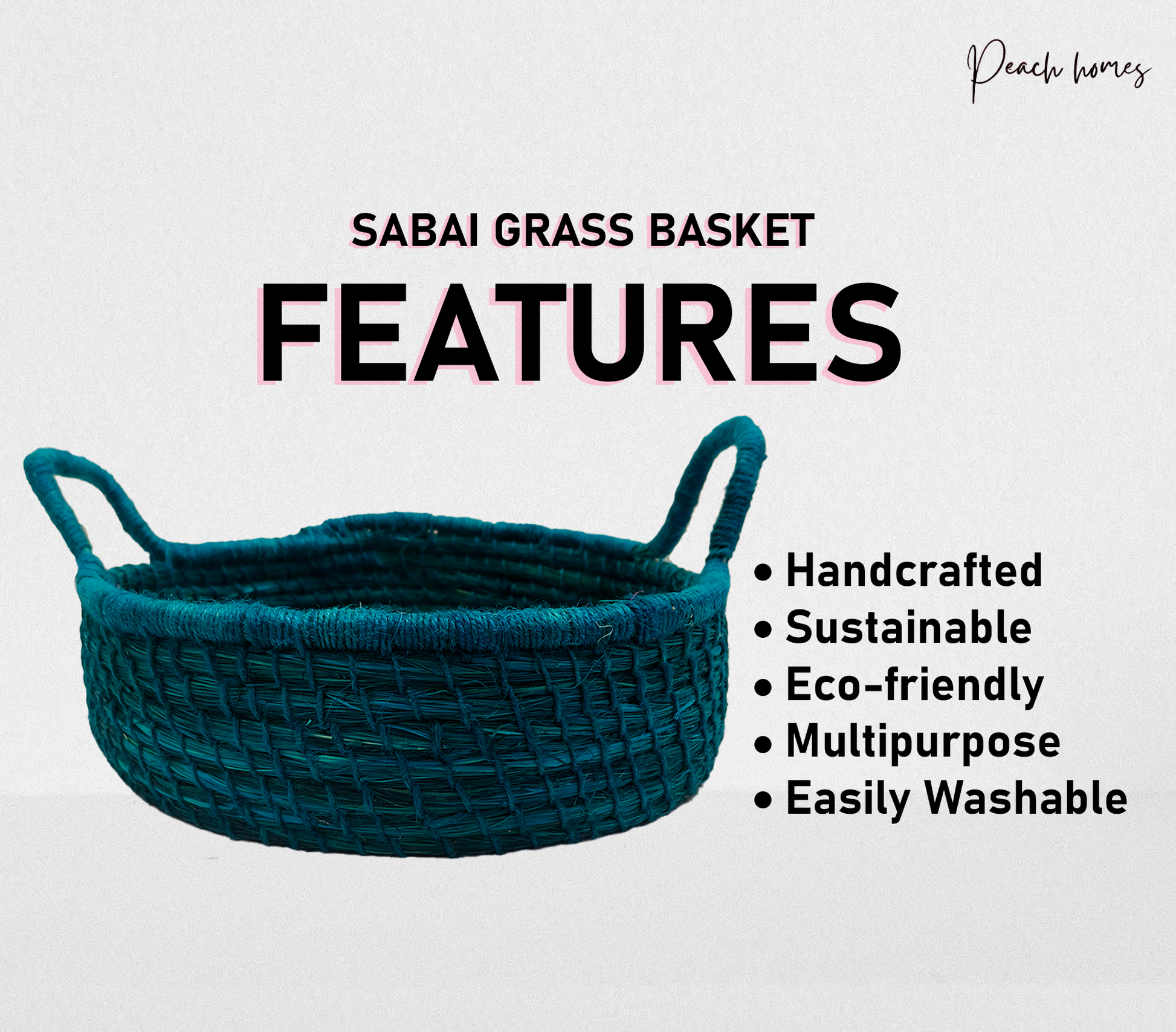 Handmade Sabai Grass Basket with Handel for Easy Grip
