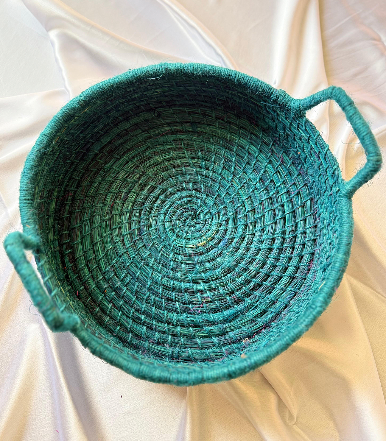 Solid Green Handcrafted Sabai Grass Organiser with Handle