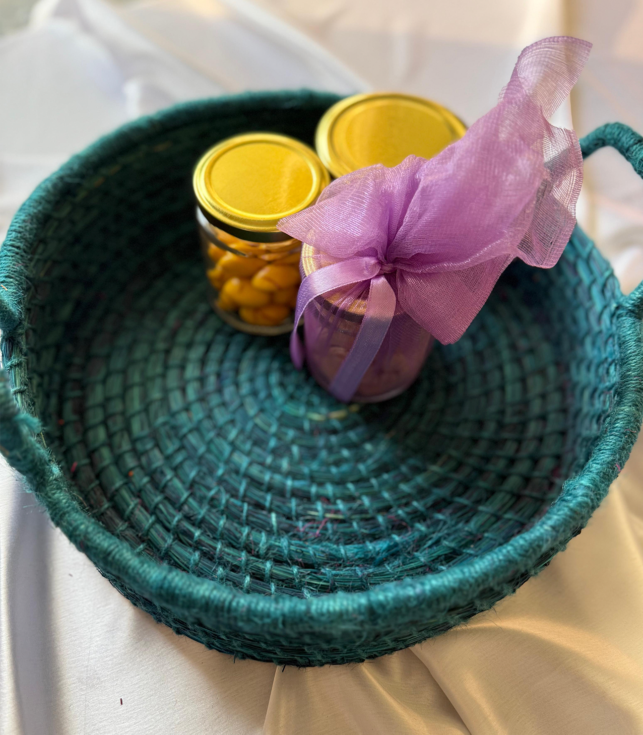 100% Handmade Ecofriendly Sabai grass basket made by artisans of Odisha. These are made with natural dye which keep the colour intact. These baskets can be used as gifting baskets, storage baskets for wardrobe, baskets for organizing etc. It fits everywhere from shelves to tables and inside the wardrobe. These baskets are easier to clean and maintain. These baskets are strong, spacious and trendy for domestic use as well as gifting.With eco-friendly materials and unique artisan craftsmanship, it adds rustic charm to any dining table.