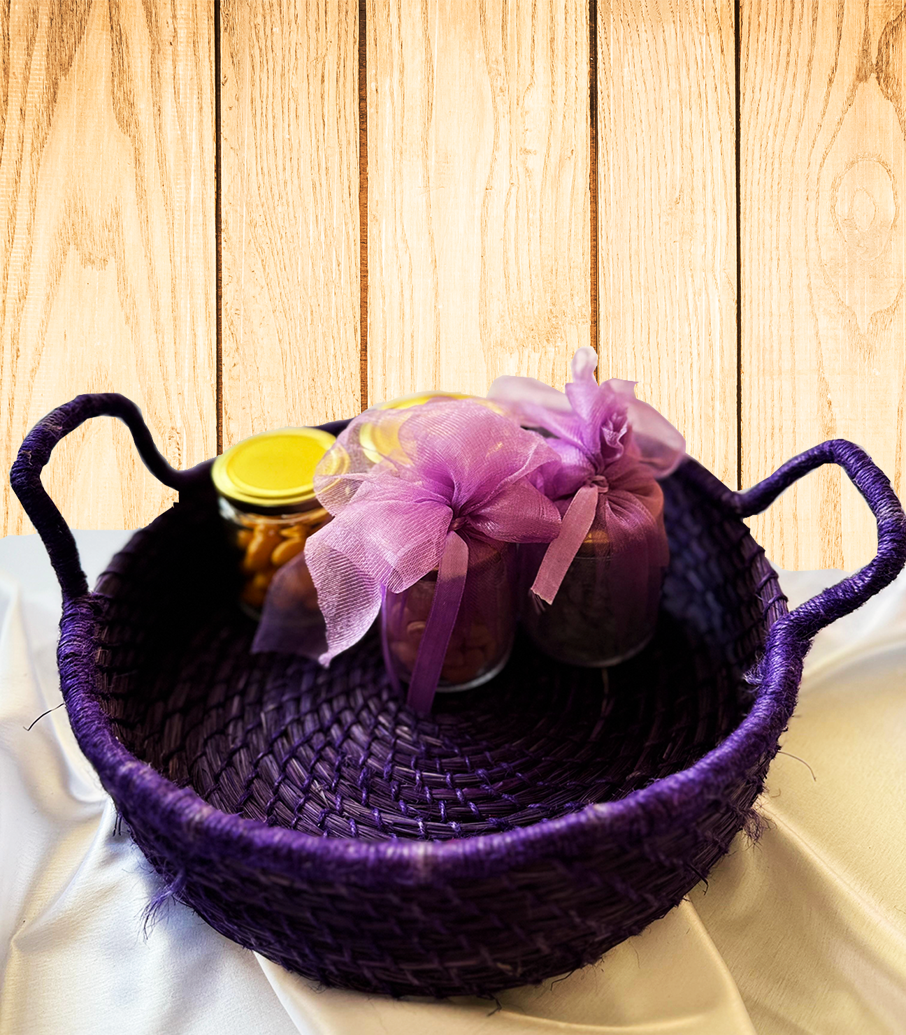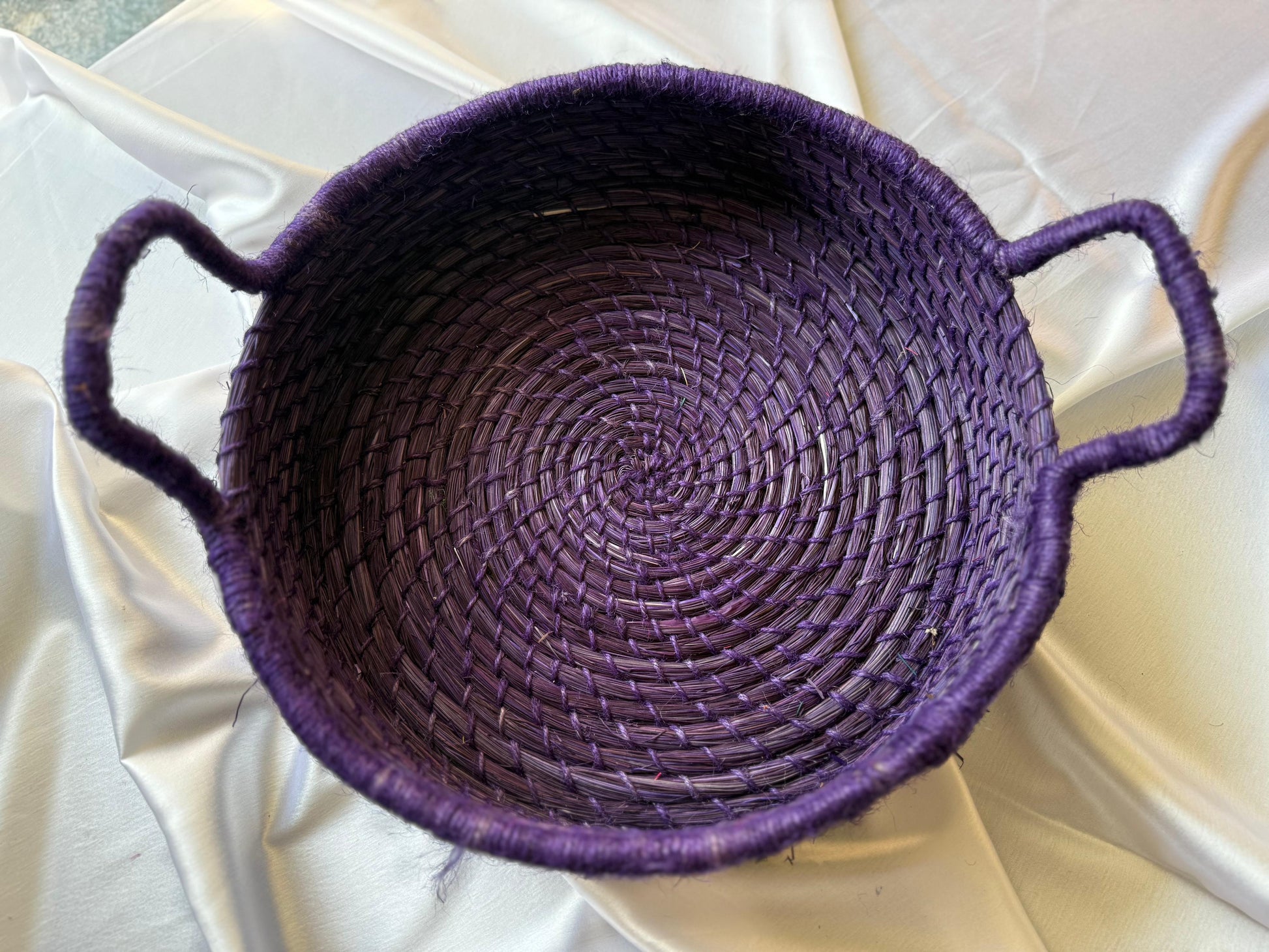 Solid Purple Handcrafted Sabai Grass Organiser with Handle