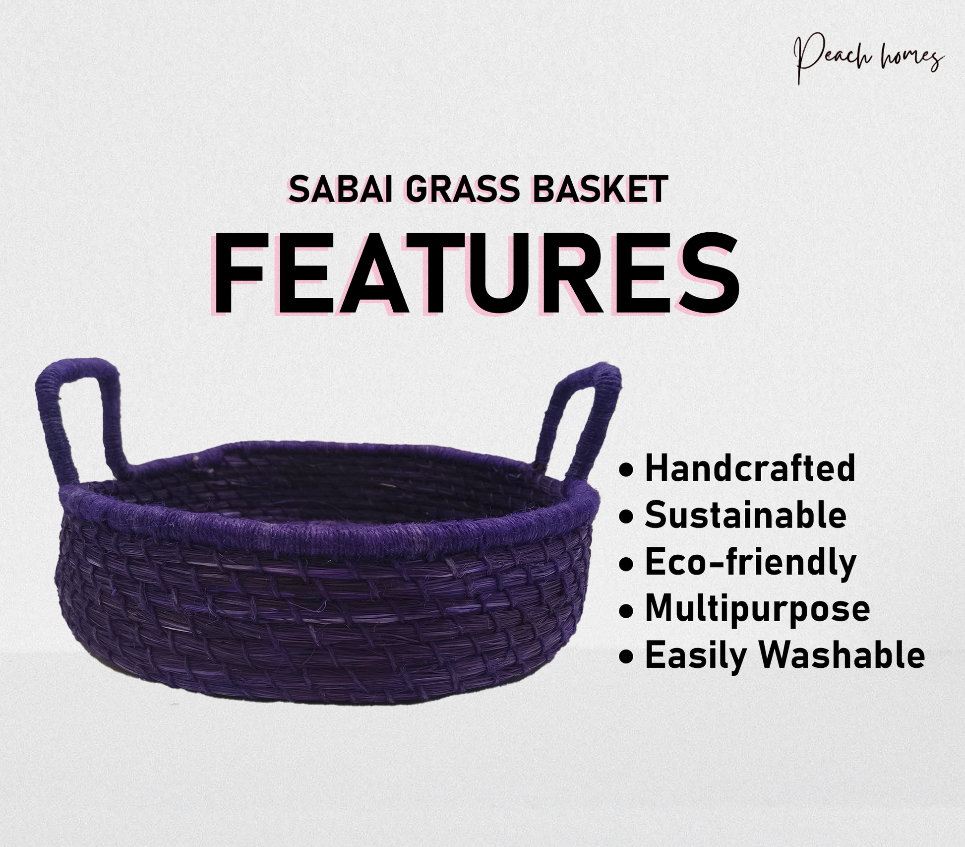 Handmade Sabai Grass Basket with Handel for Easy Grip