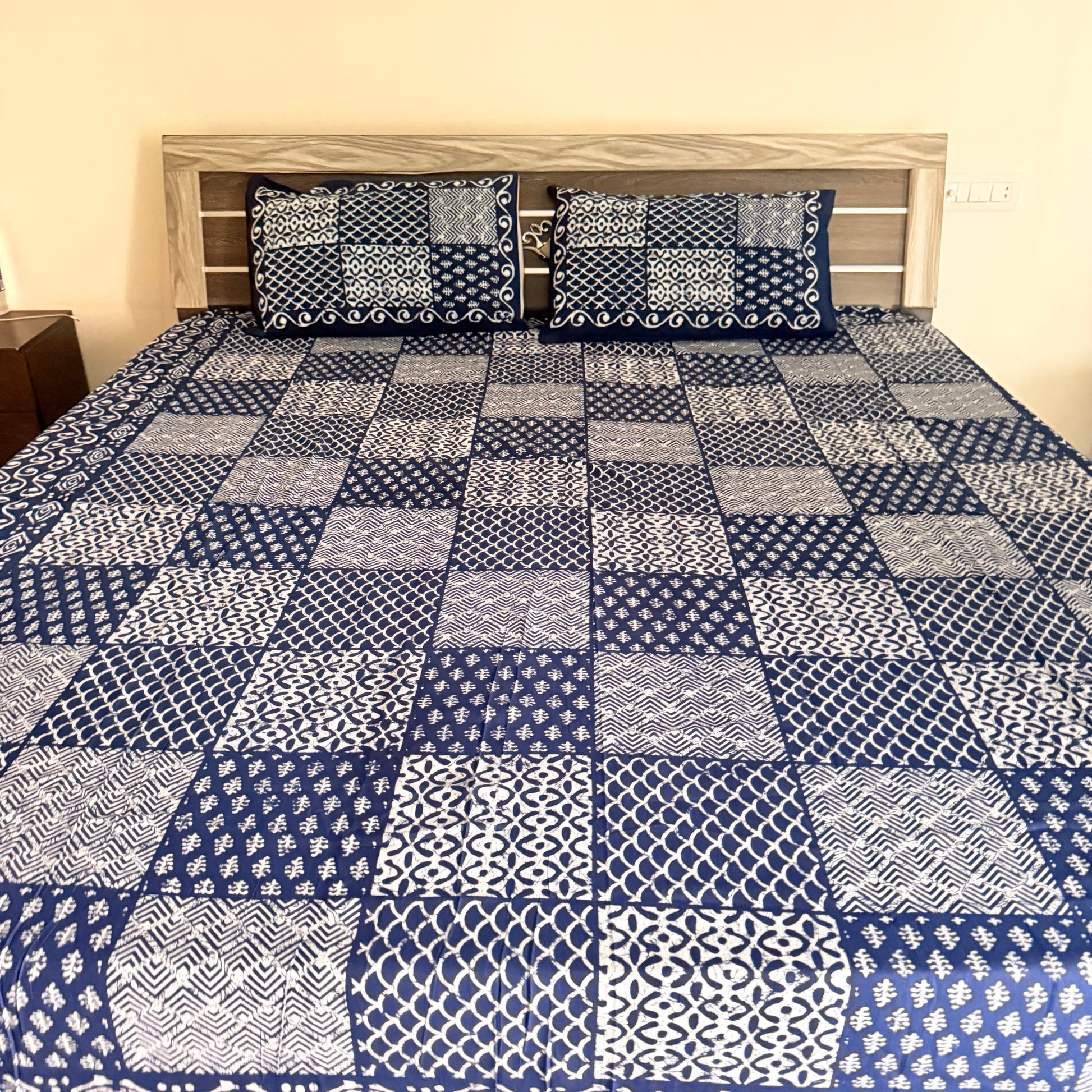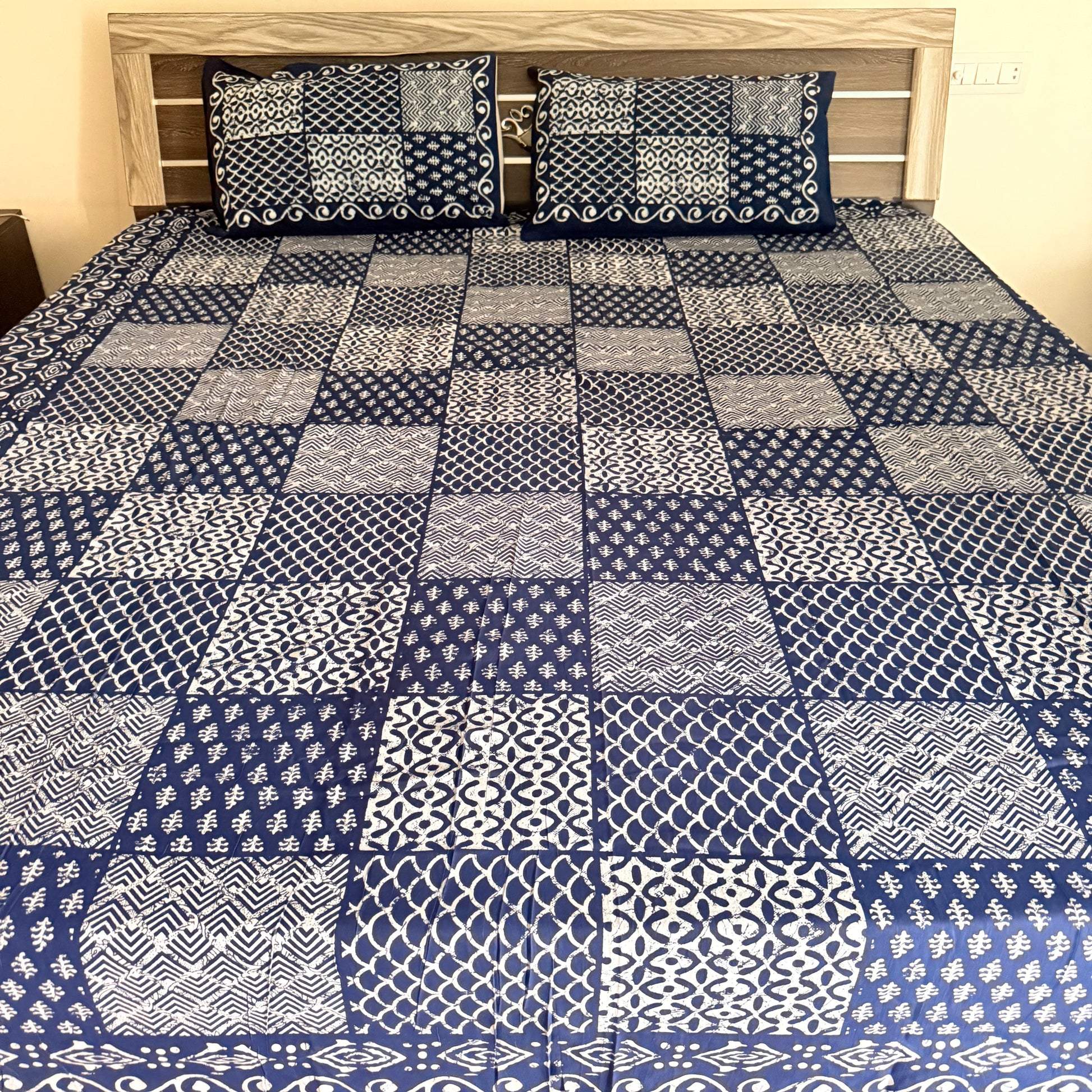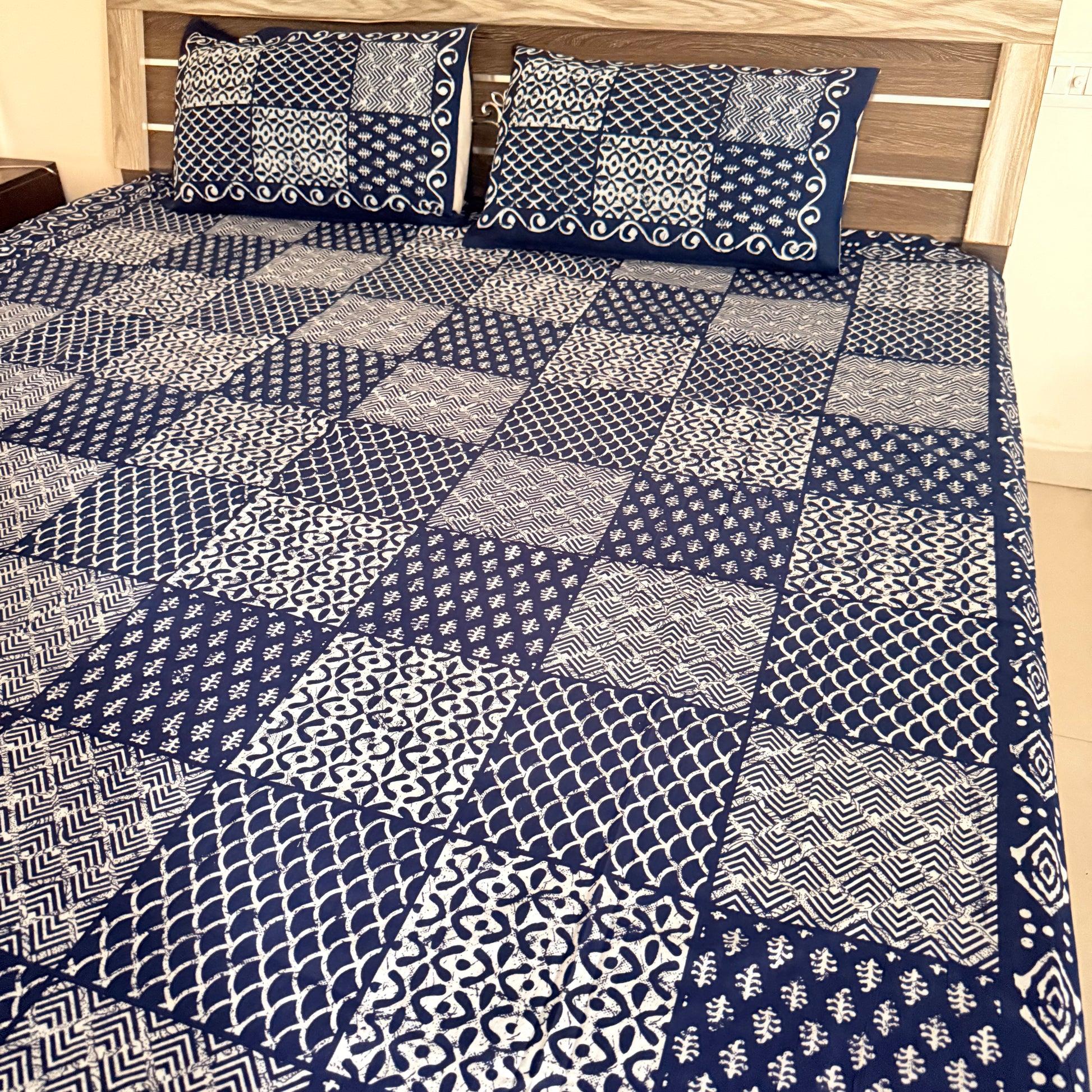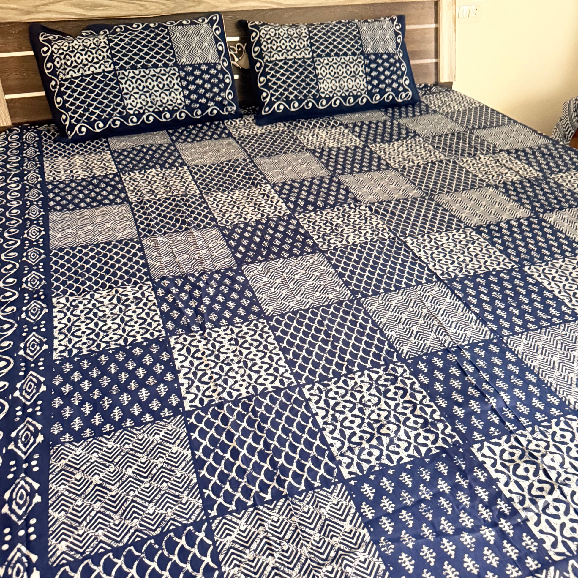 ✨ Premium Cotton Indigo Bedsheet – Elegance Meets Comfort ✨