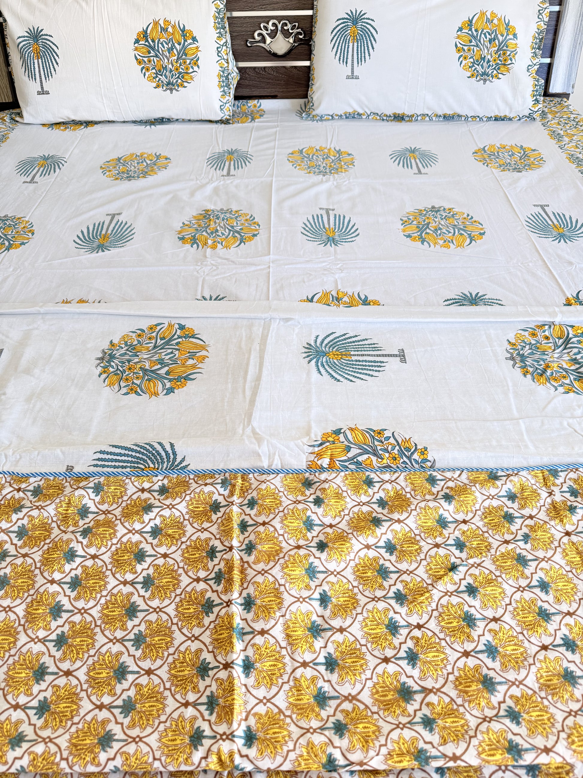 Wrap yourself in the comfort of tradition with this exquisite handmade dohar bedsheet set, a perfect blend of artistry, softness, and durability!