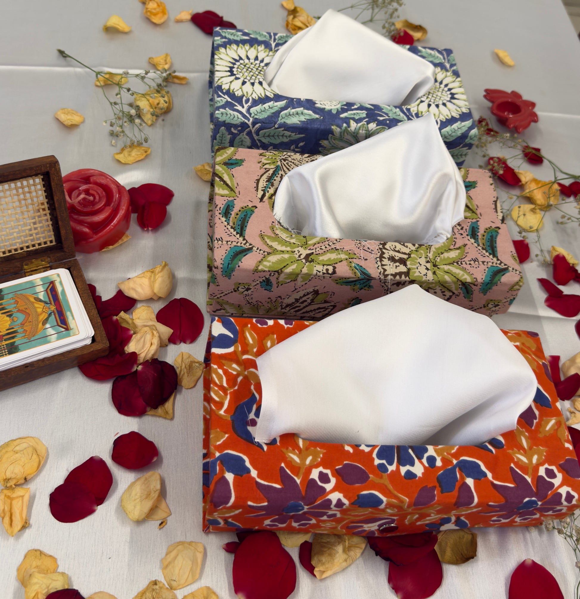 Upgrade your tissue box game with our Handblock Tissue Box! Hand-pressed with exquisite details, this box adds a touch of elegance to any room. Keep your tissues organized and easily accessible in a stylish and unique way. Say goodbye to boring tissue boxes and hello to a functional decor piece.