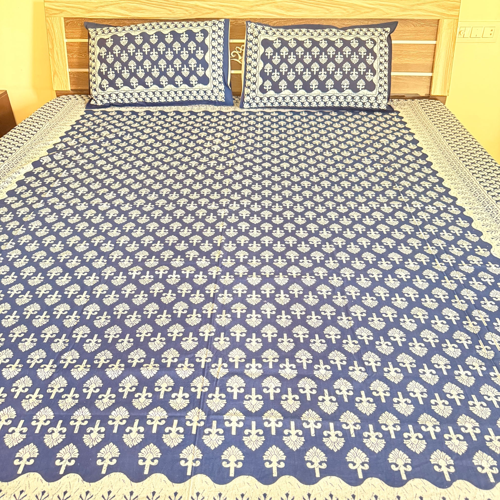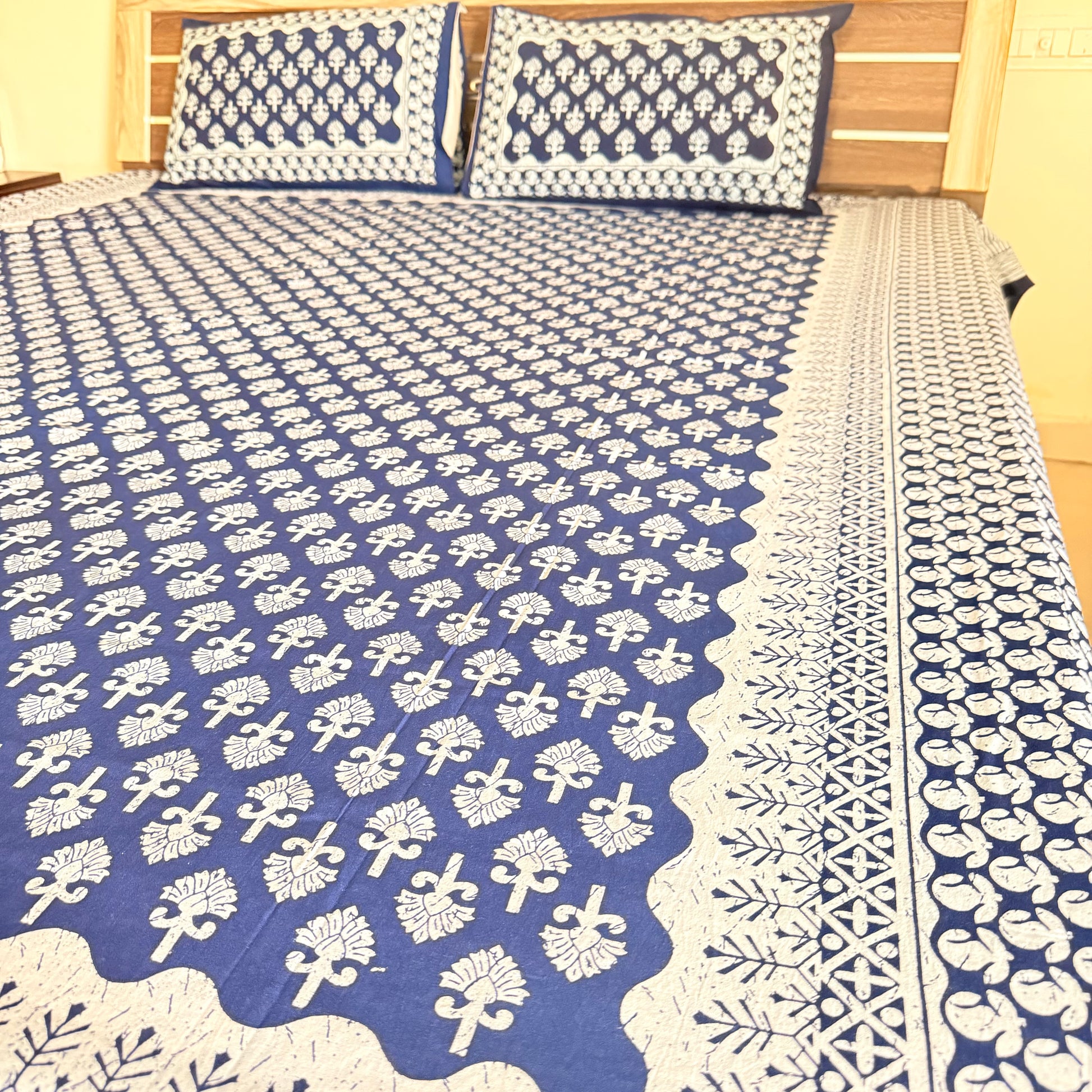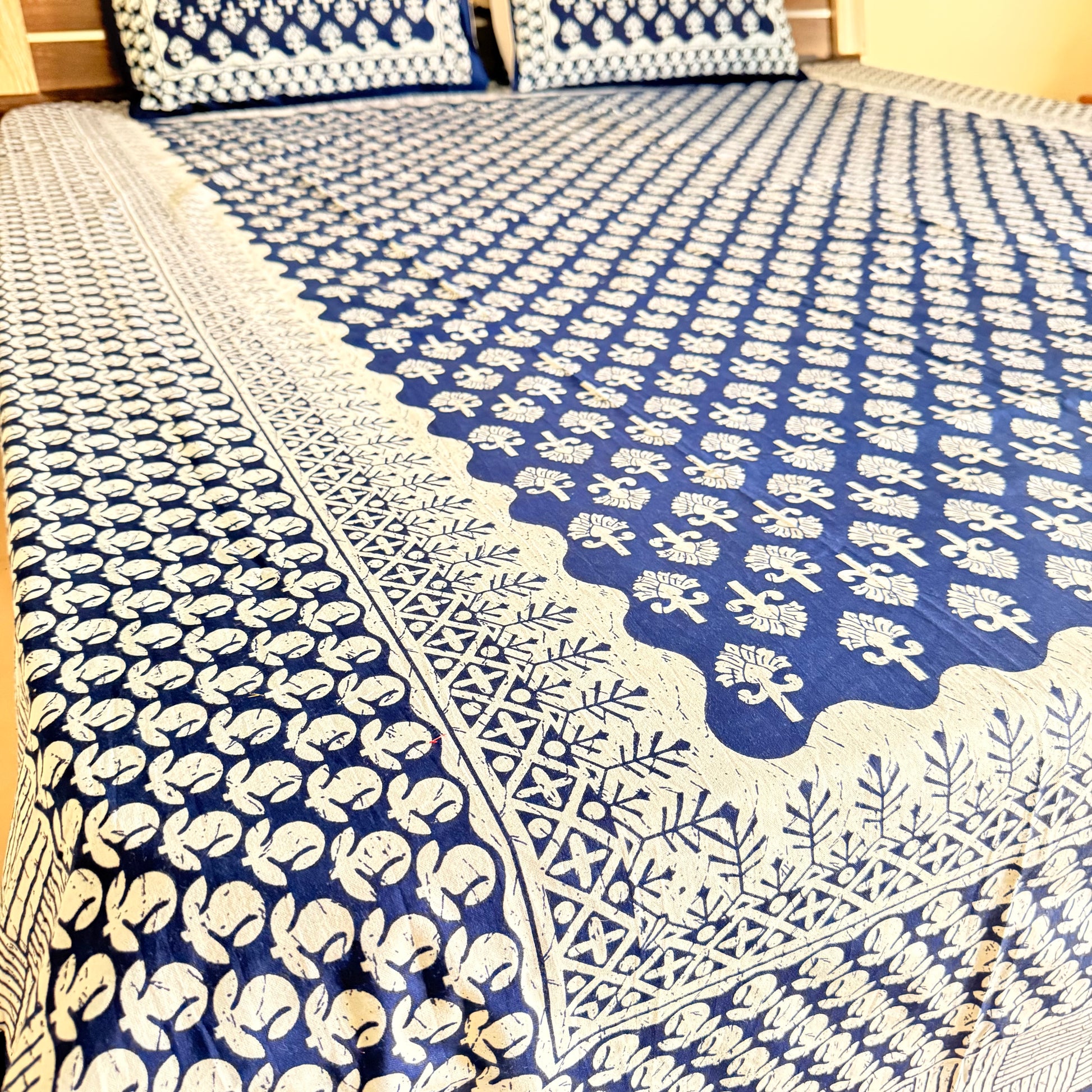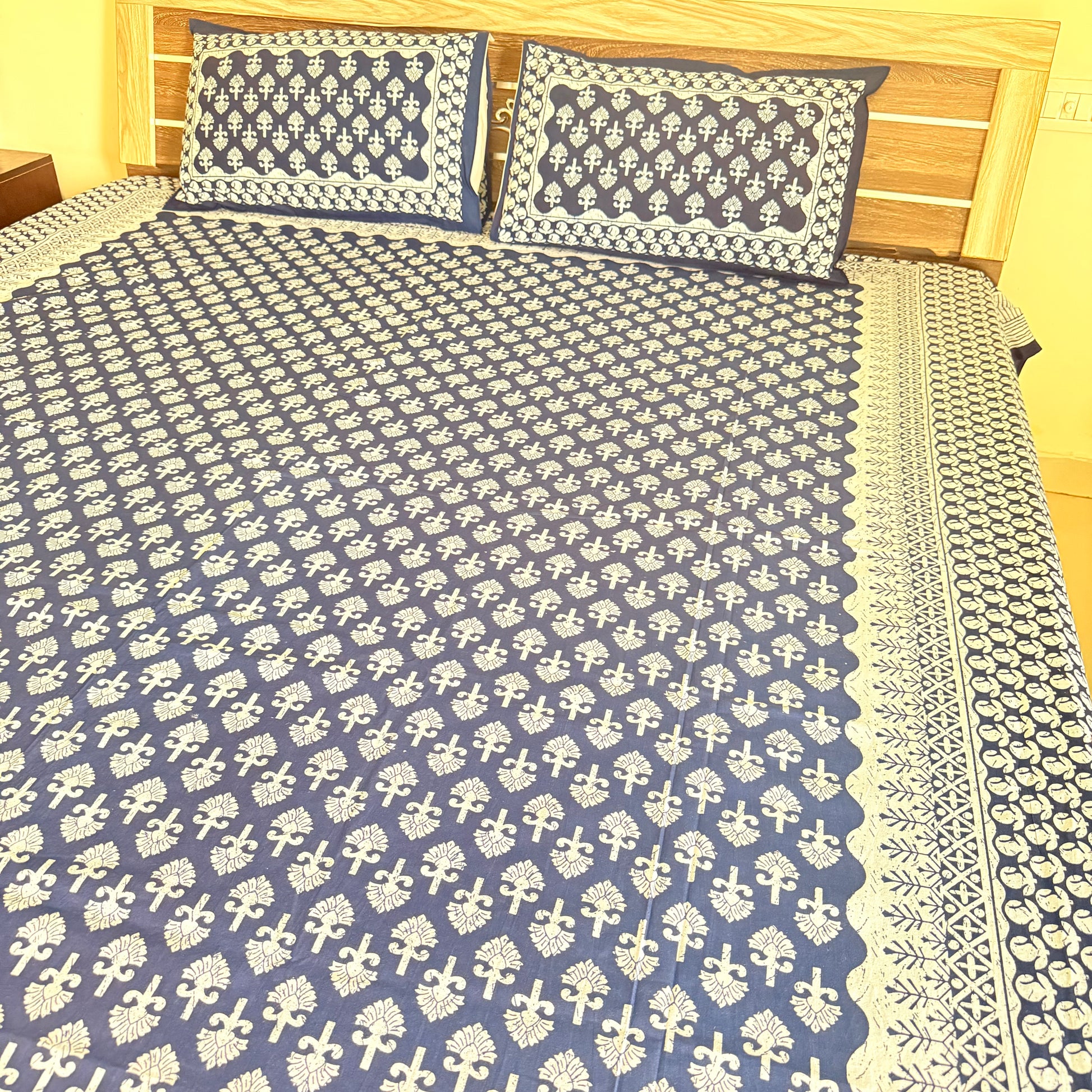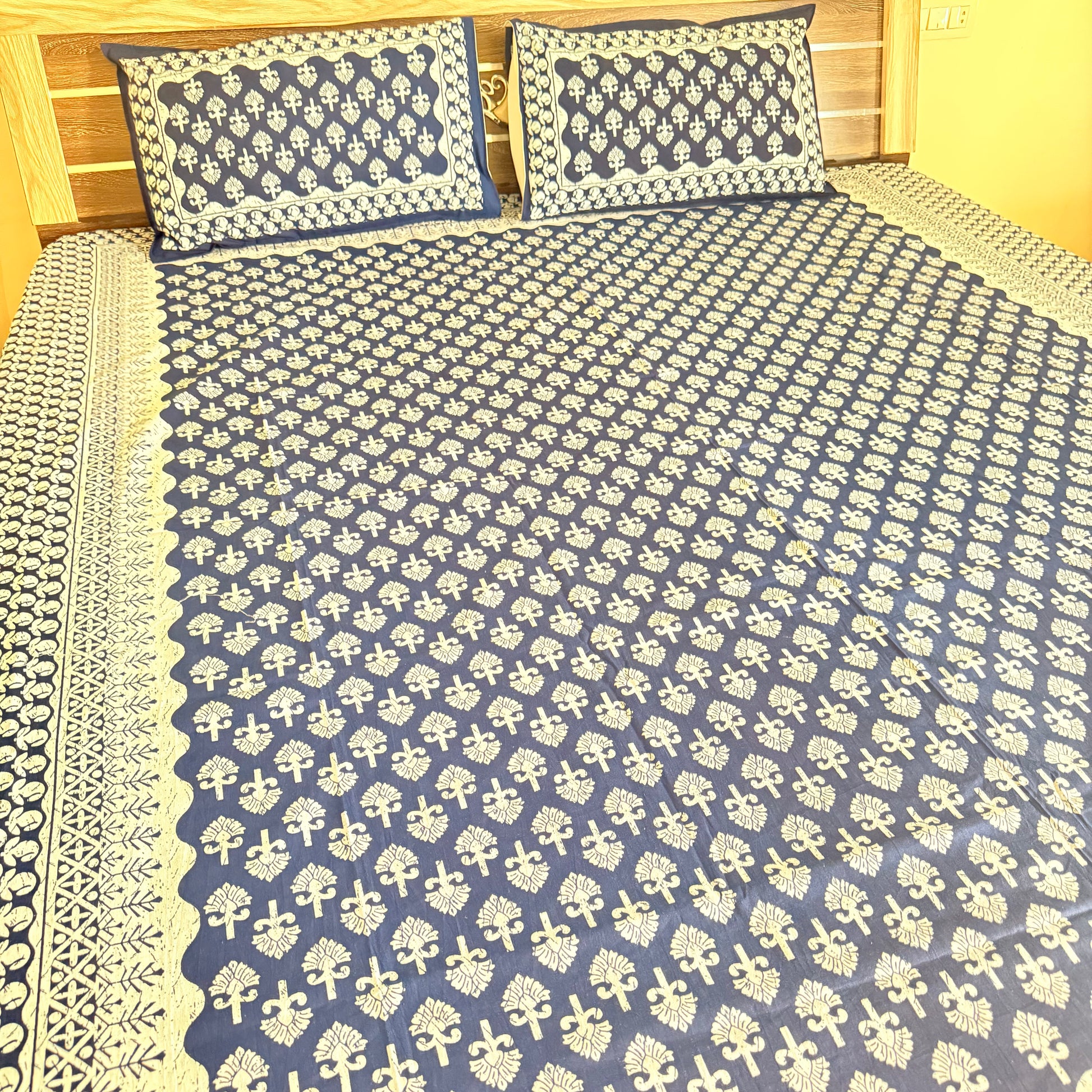 ✨ Premium Cotton Indigo Bedsheet – Elegance Meets Comfort ✨