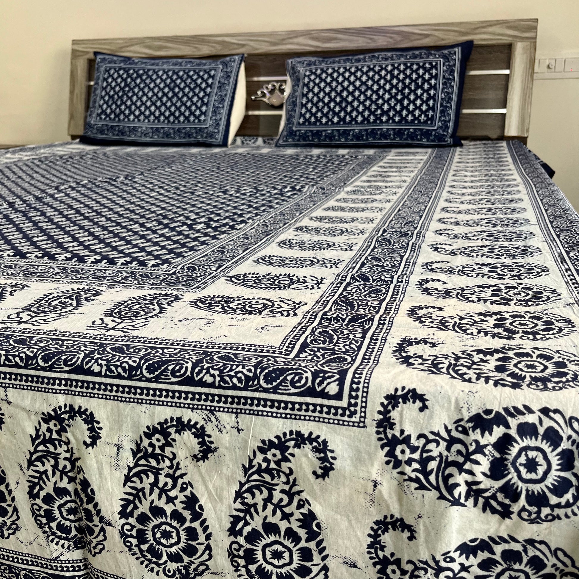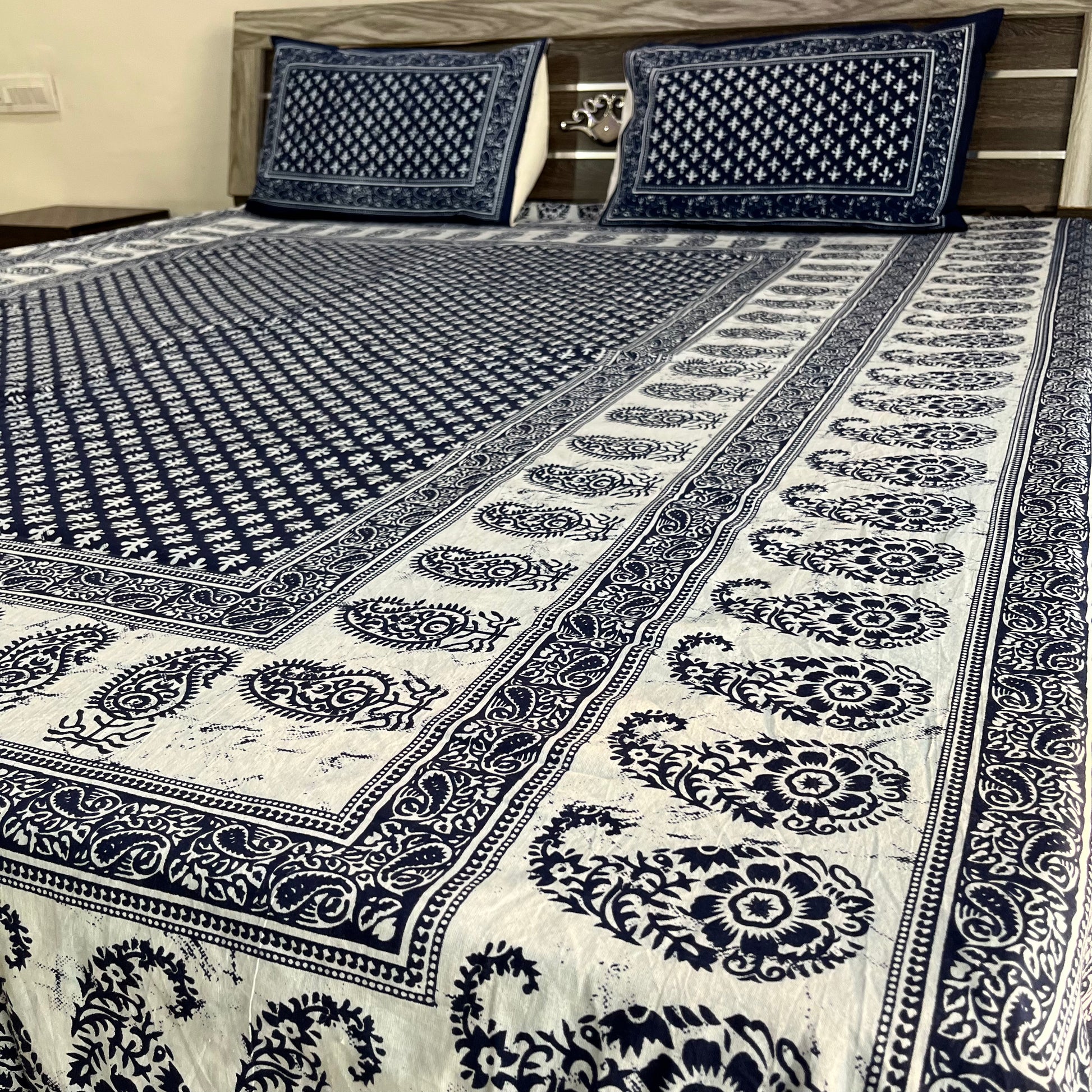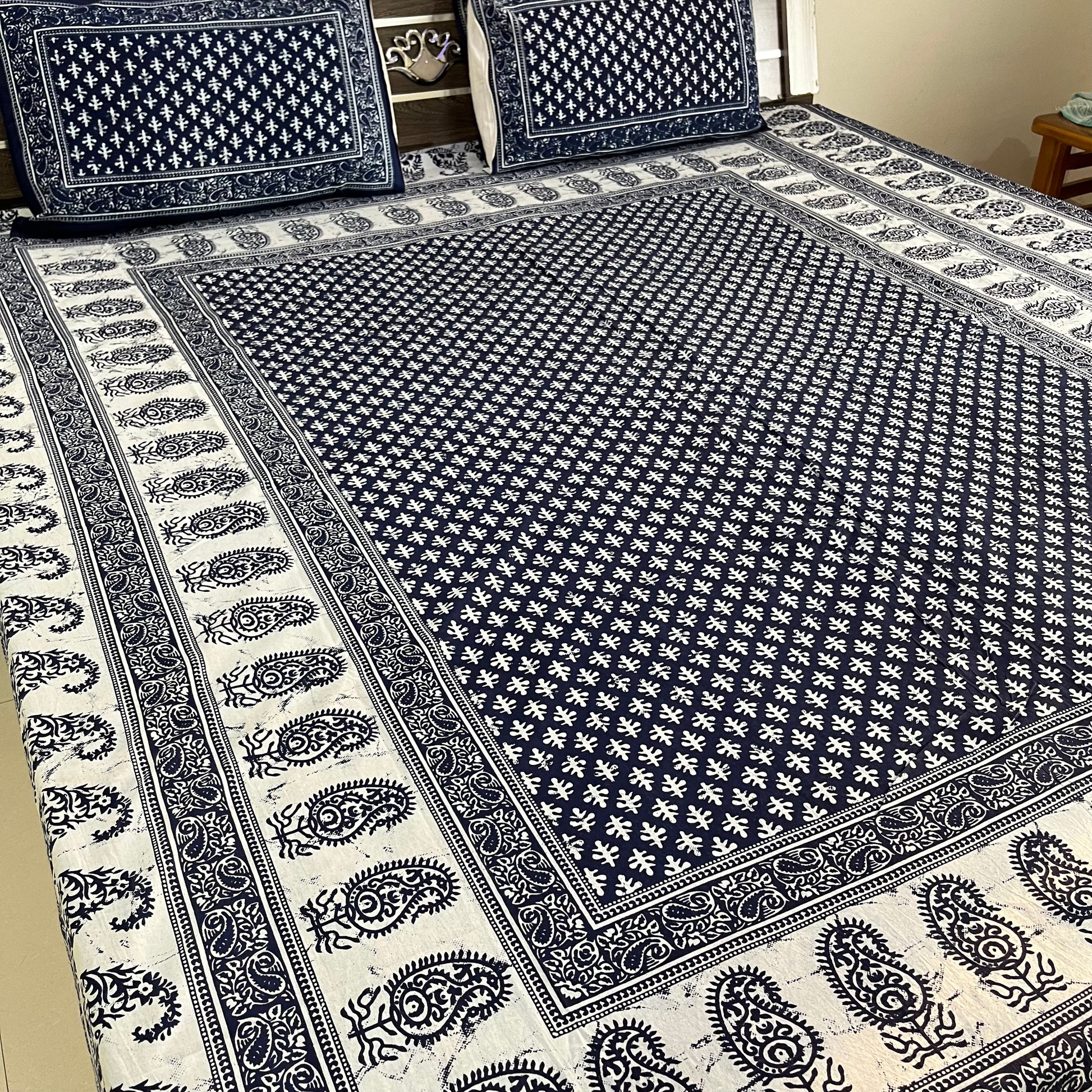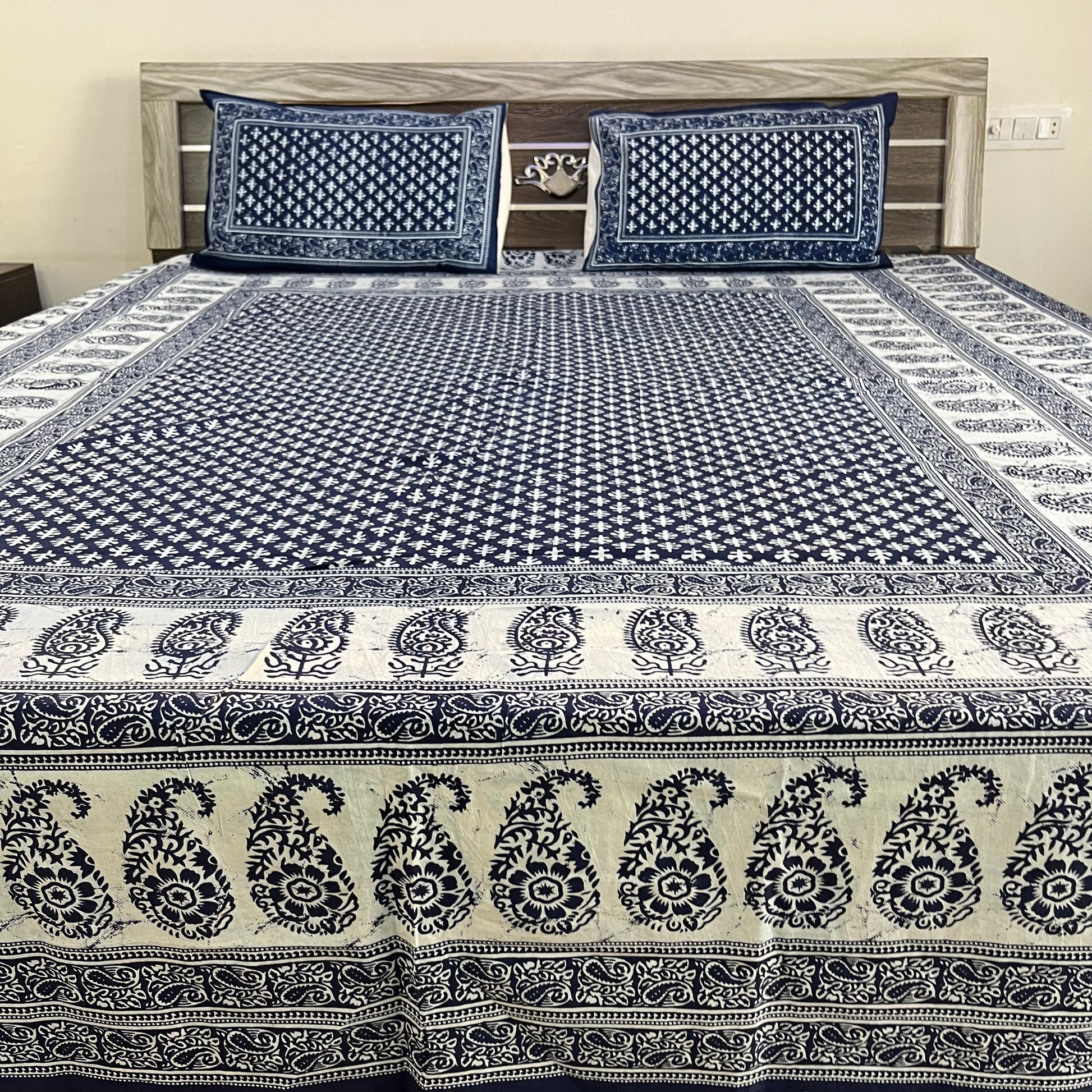✨ Premium Cotton Indigo Bedsheet – Elegance Meets Comfort ✨