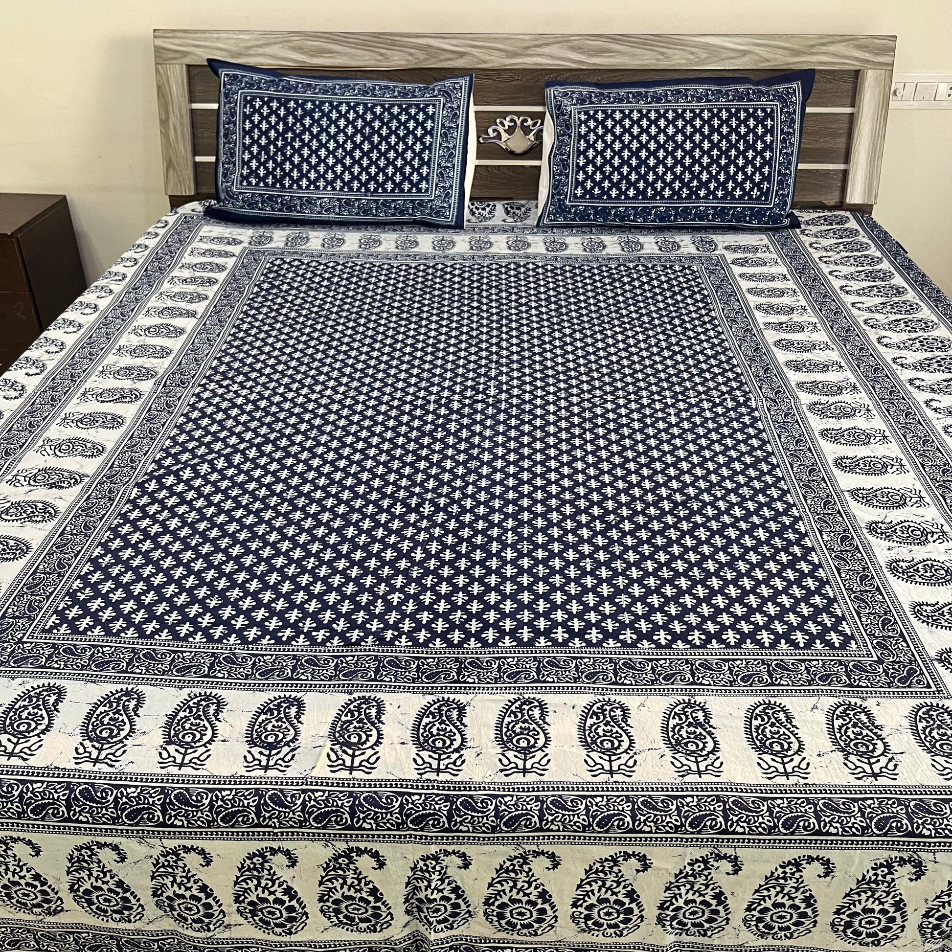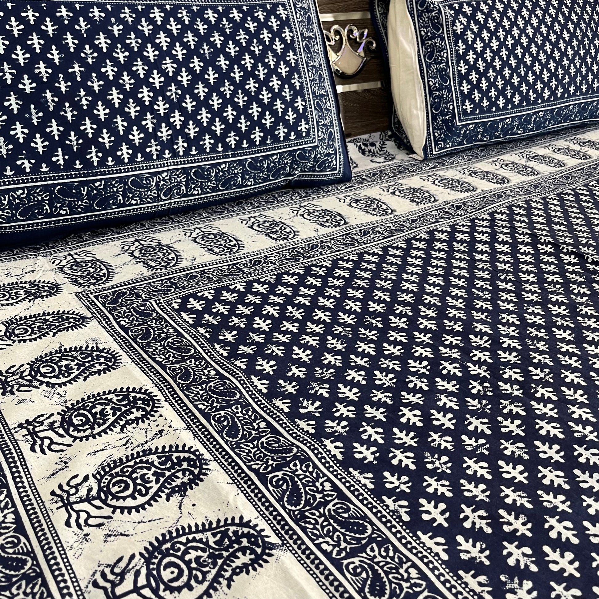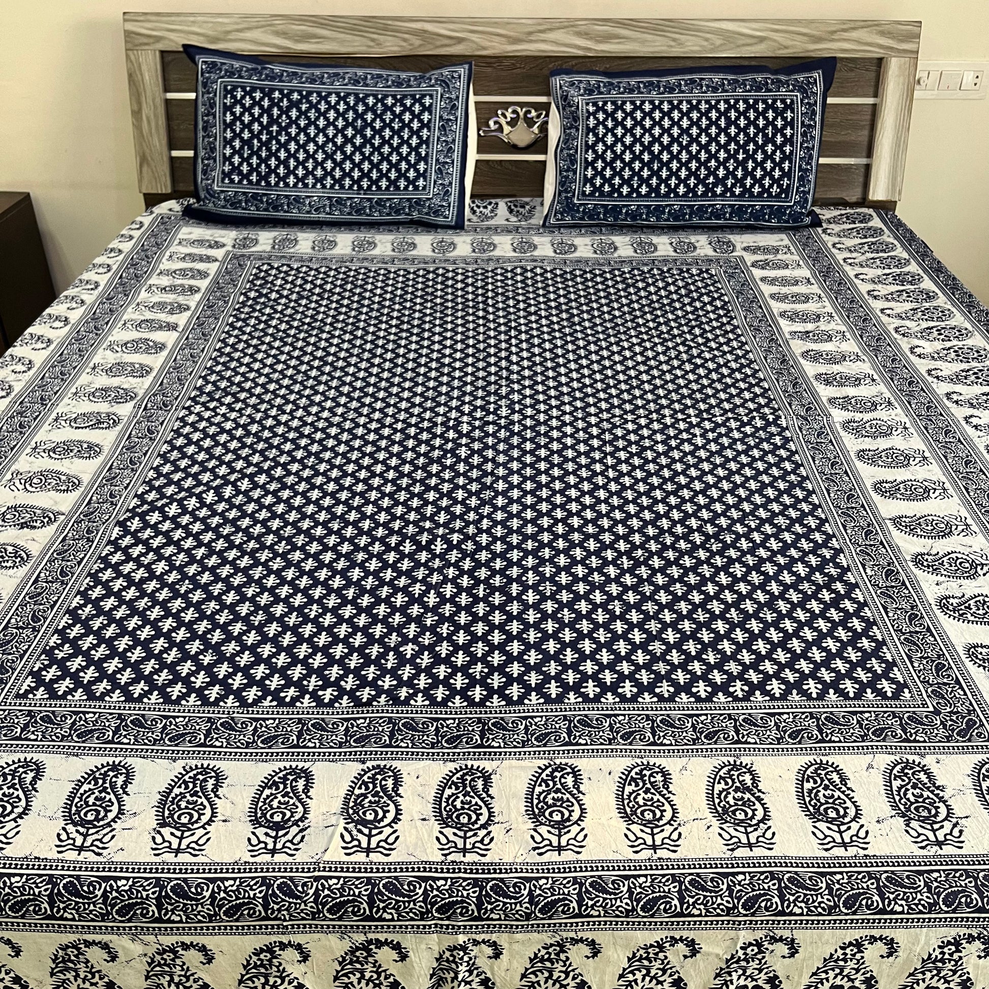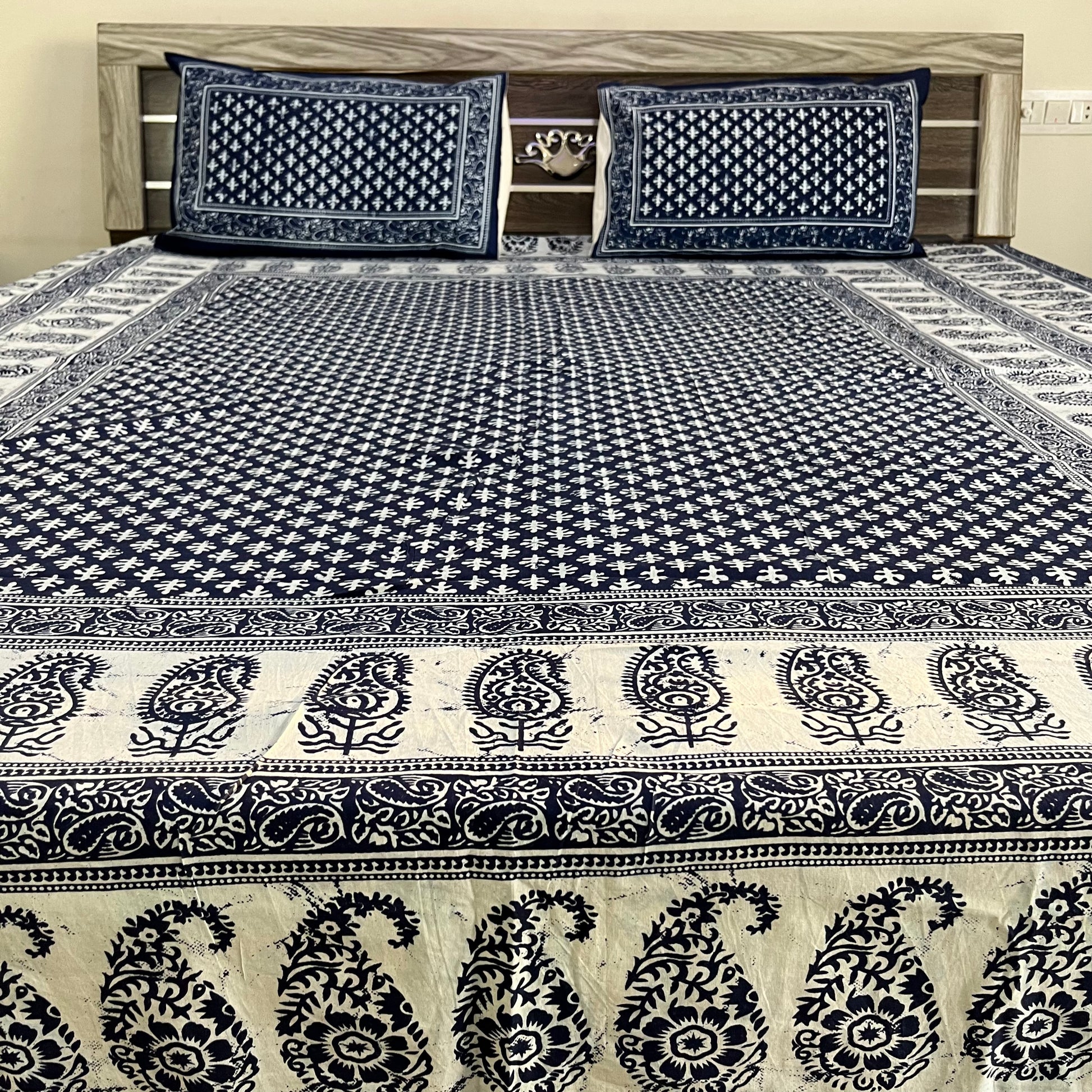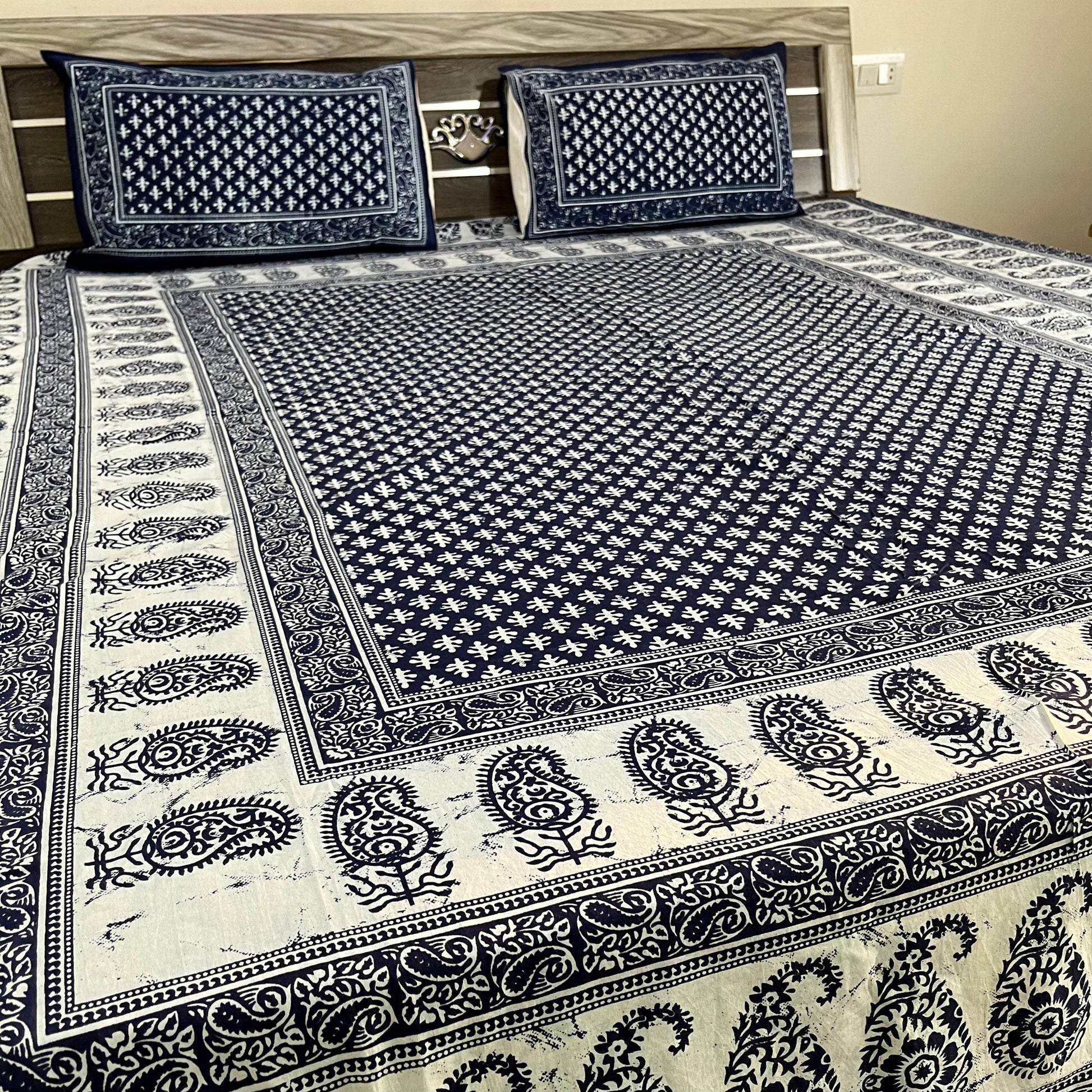 ✨ Premium Cotton Indigo Bedsheet – Elegance Meets Comfort ✨