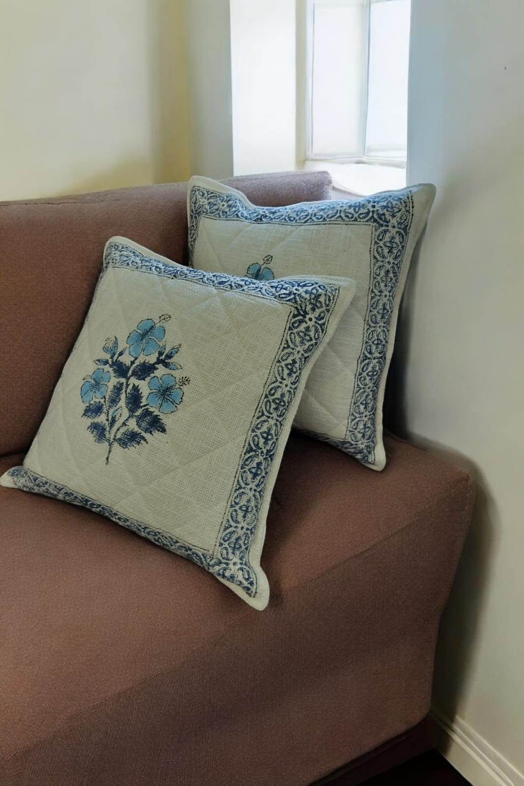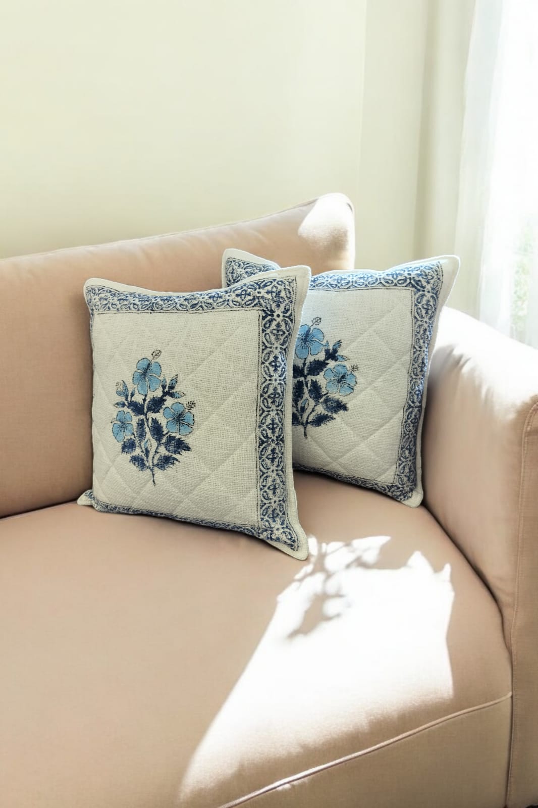 - 16*16 Cotton Quilted Hand block Cushion Covers