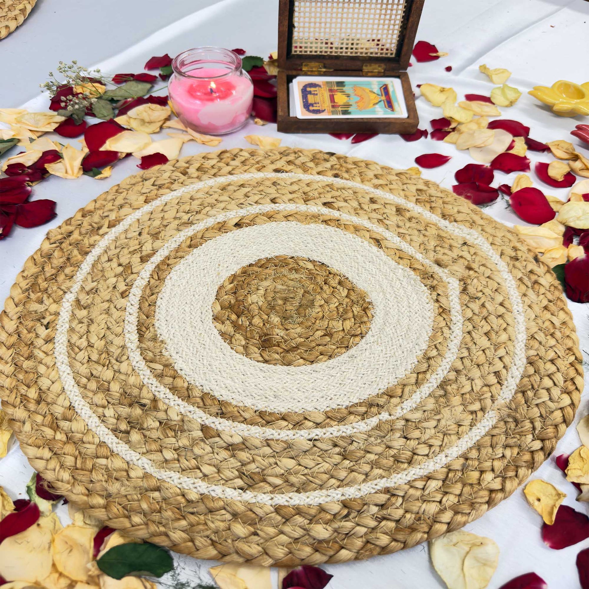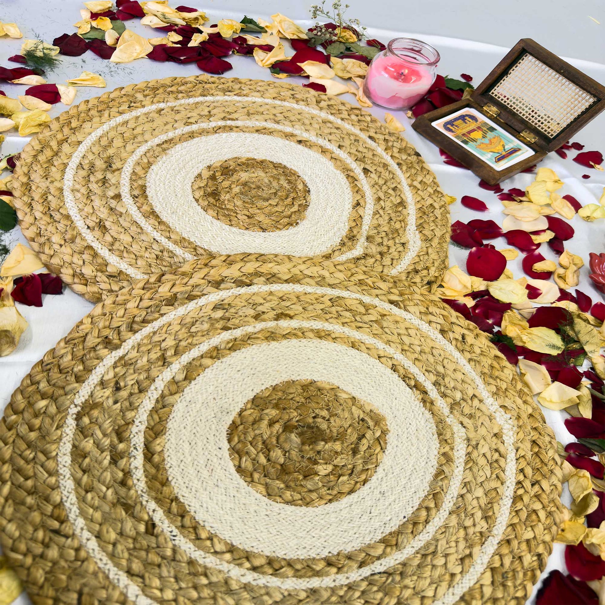 White Circle Jute Table Placemat (Pack of 2) – Eco-Friendly and Stylish