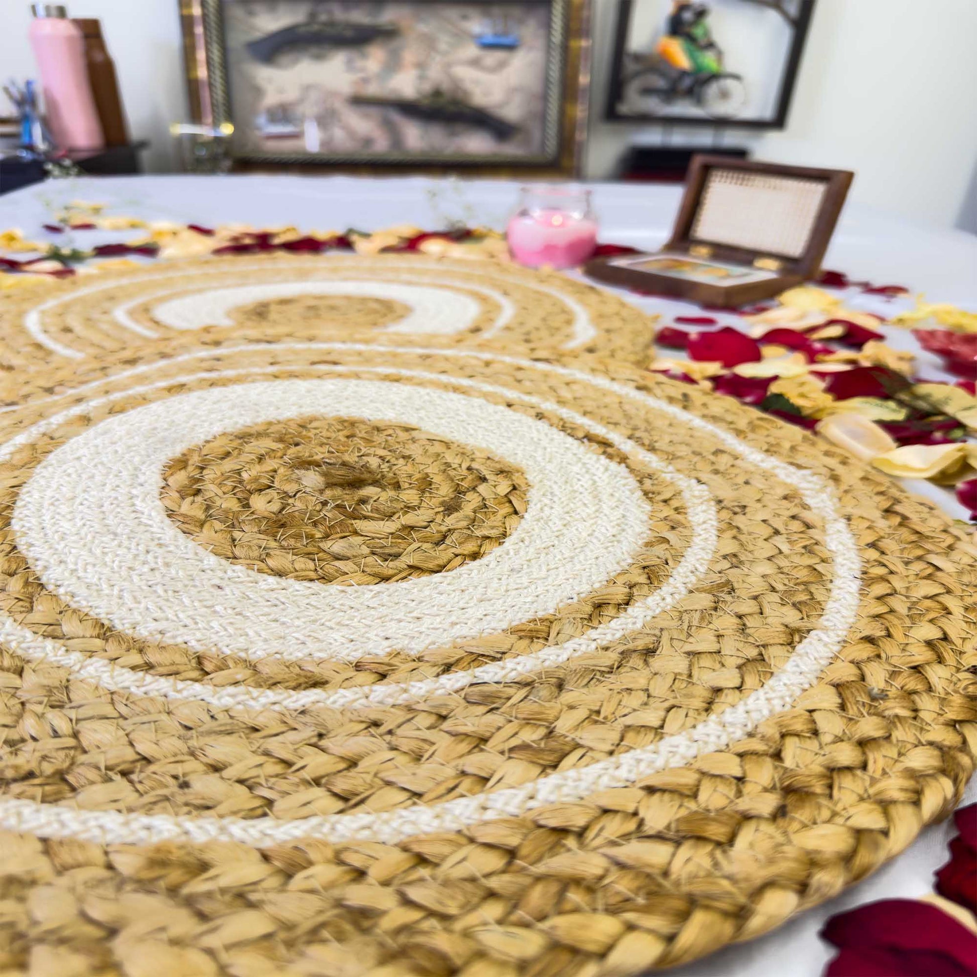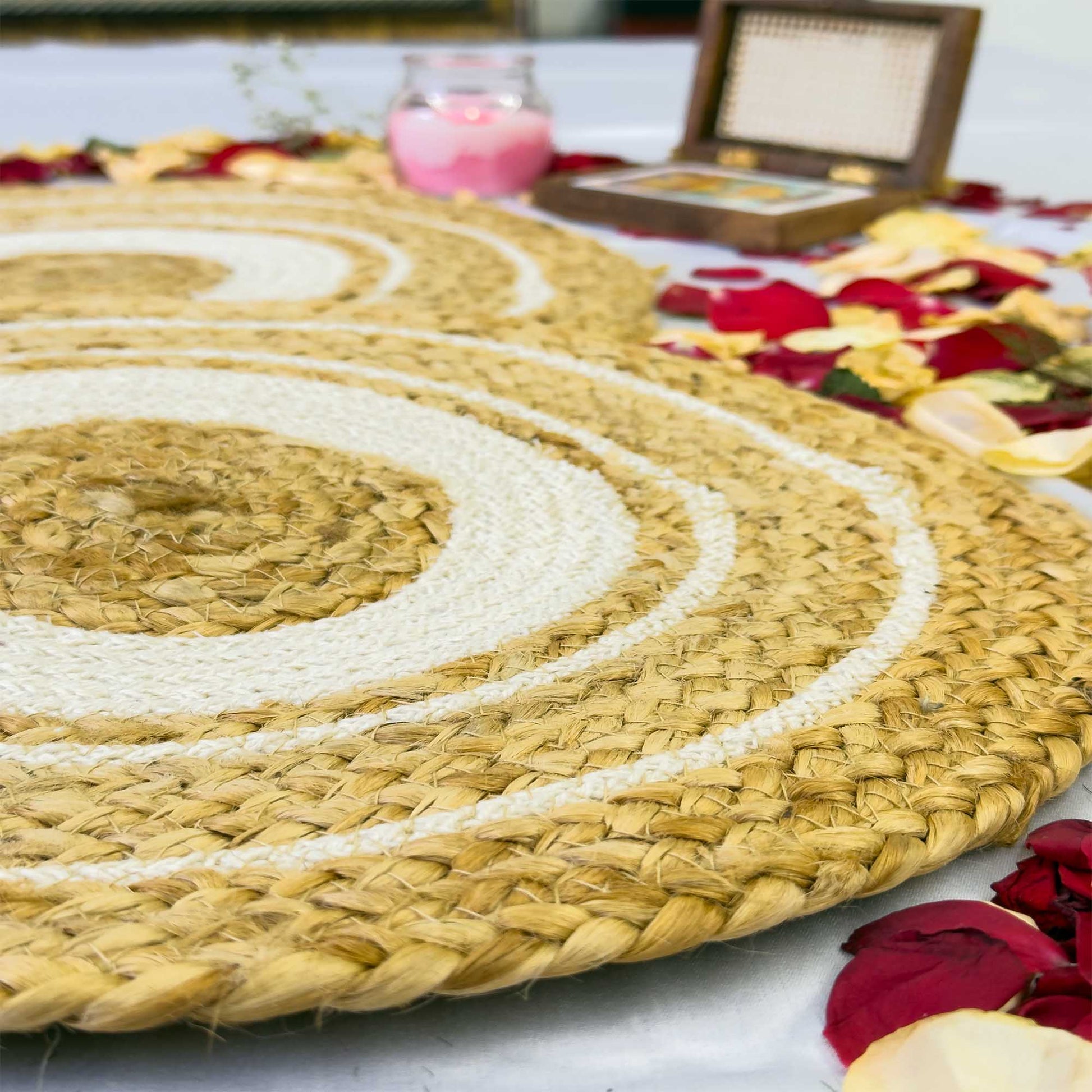 - Design: Hand-braided circular pattern with a rustic, elegant appeal
