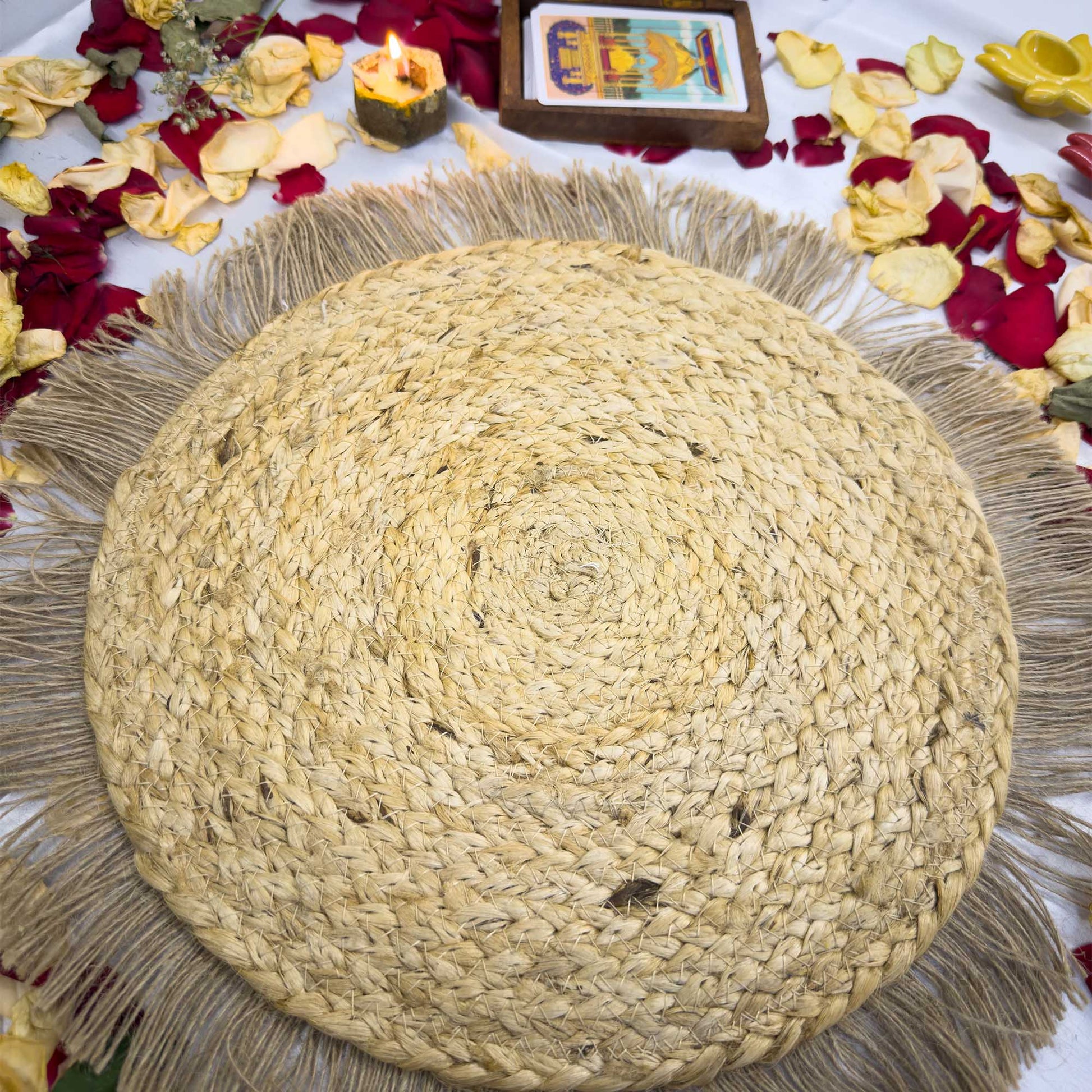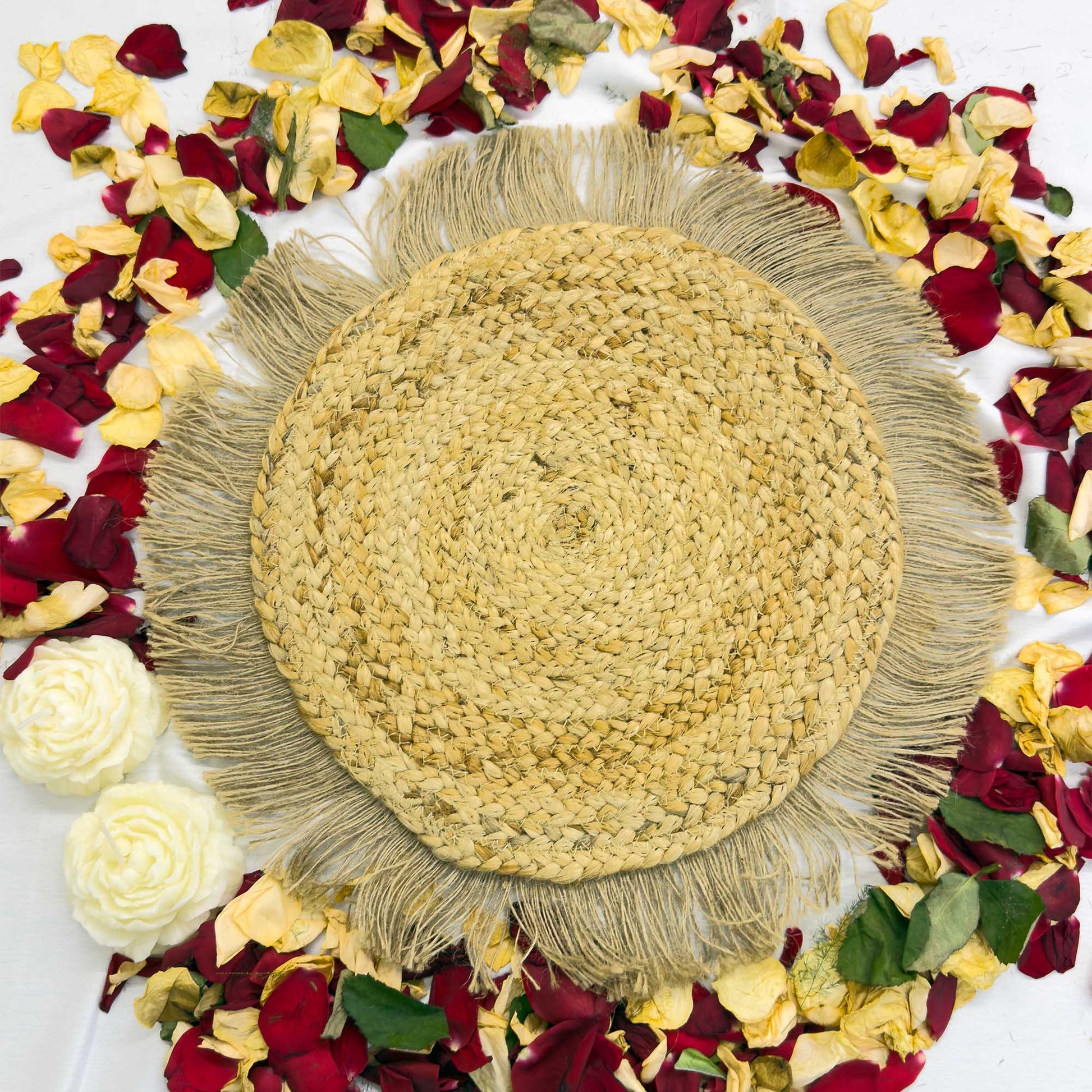 Fringe Pattern Jute Circular Border Dining Table Placemat (Pack of 2) – Eco-Friendly and Stylish