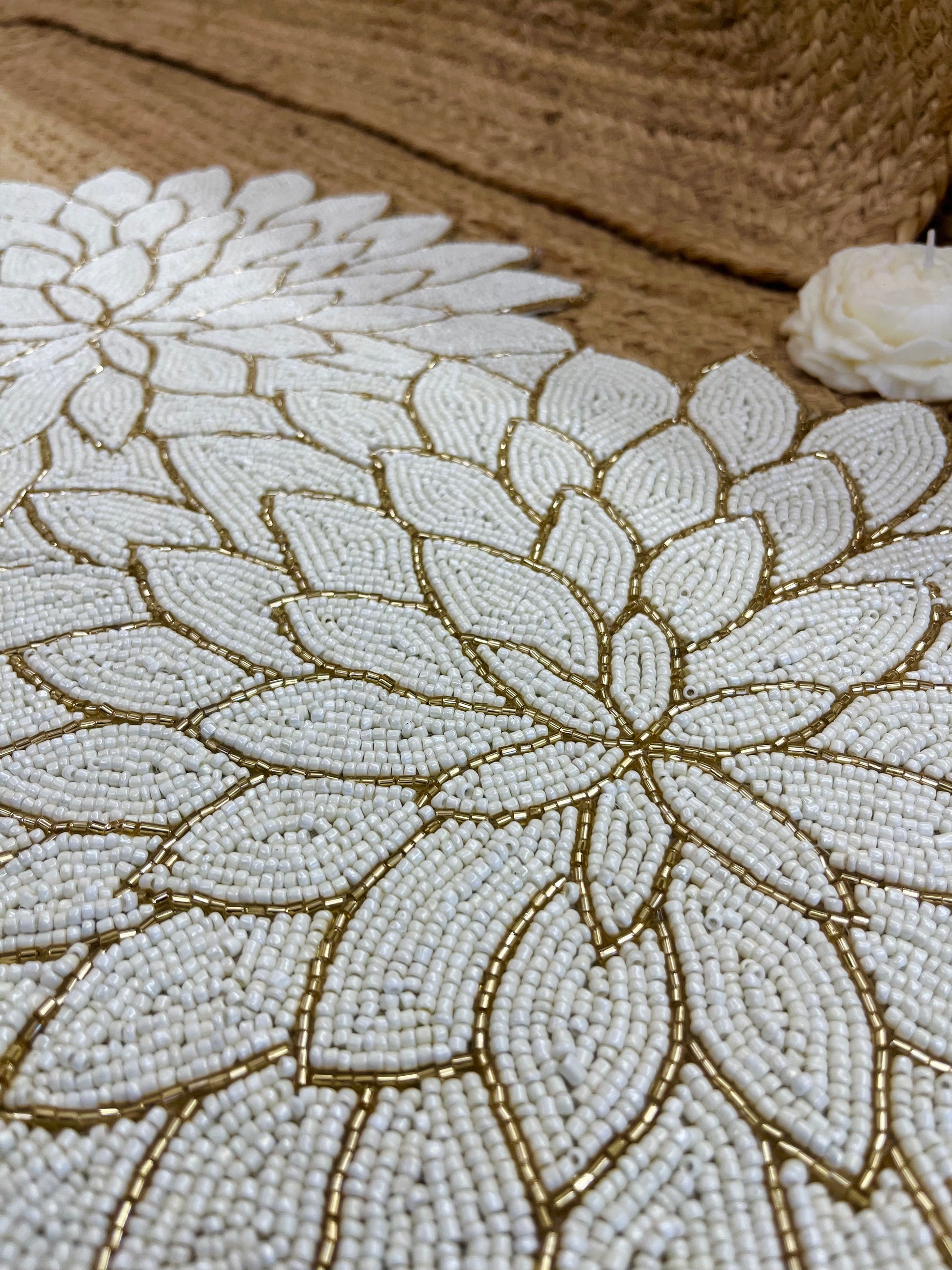 A must-have for those who appreciate artisanal craftsmanship and luxurious décor, this glass beaded placemat is sure to impress your guests.