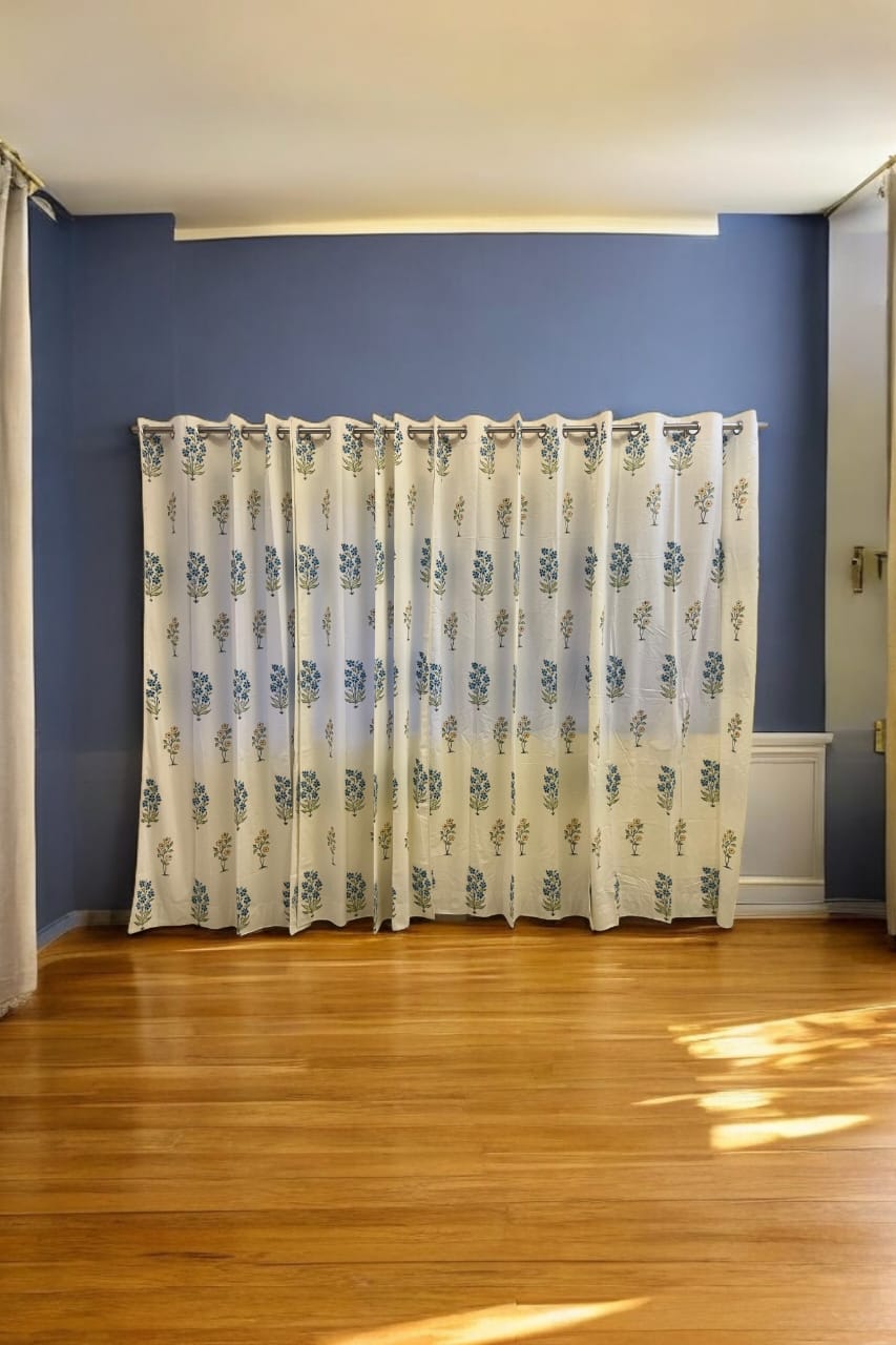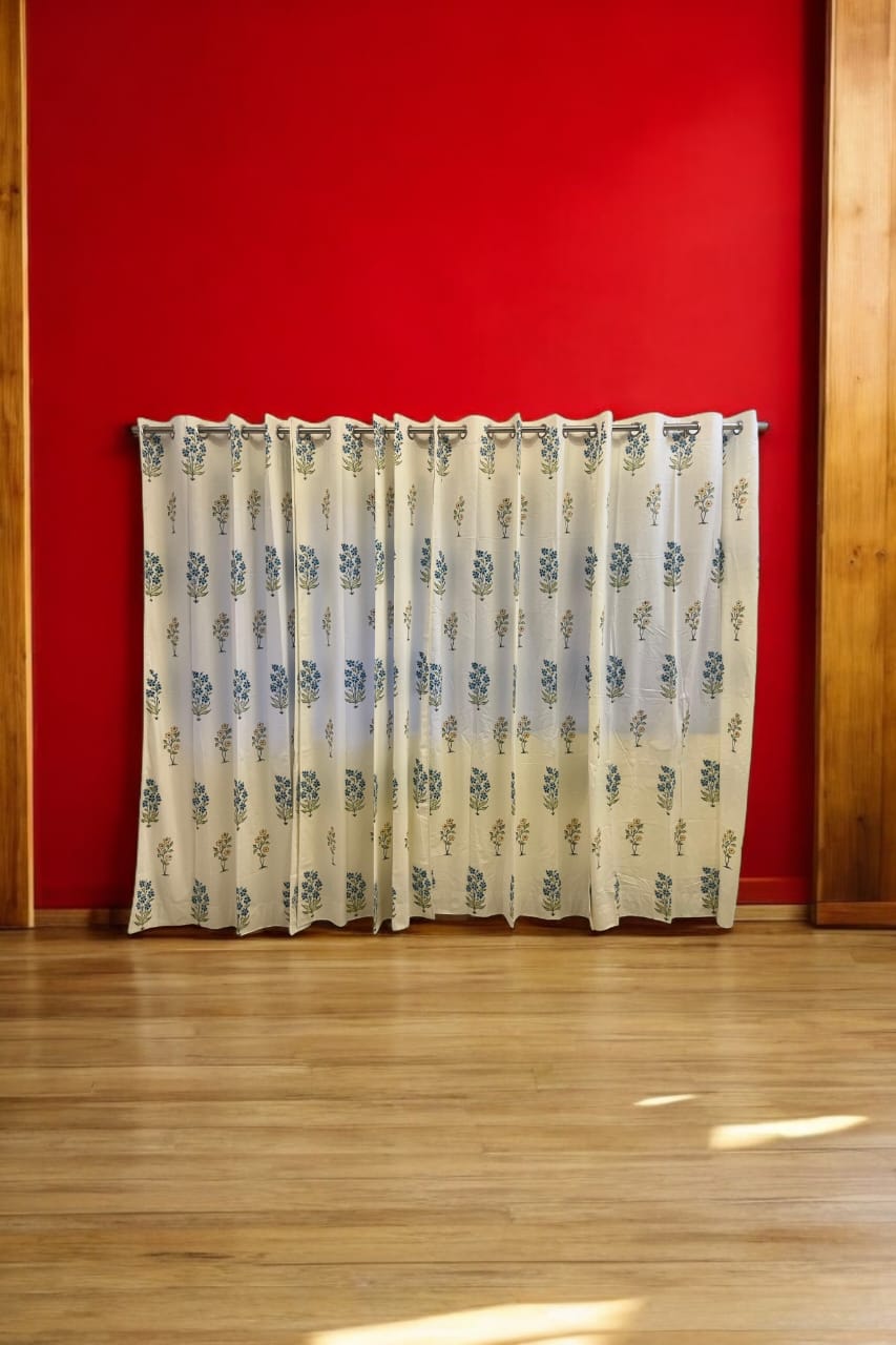 Transform your home into a serene haven with our beautiful White Handblock Curtain with an impressive Blue and Green floral pattern. Give your living space that touch of nature and elegance. Style up your windows with some charm. Perfect for any room in your home.
