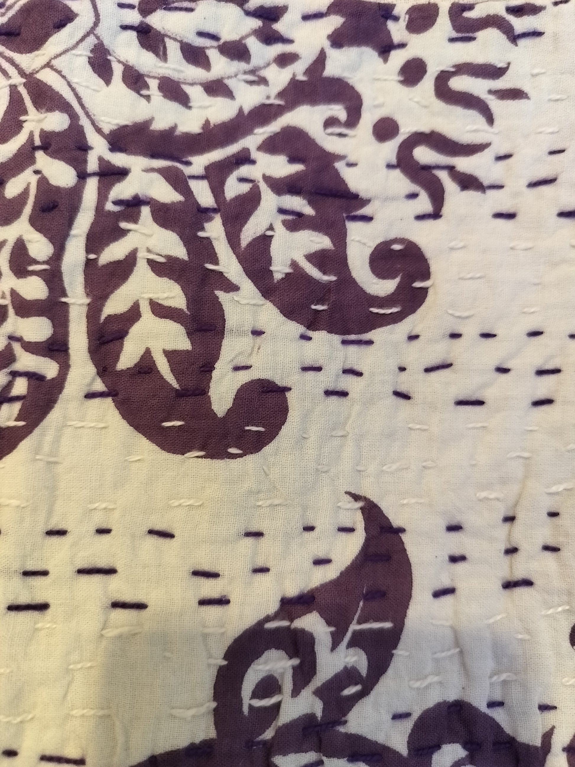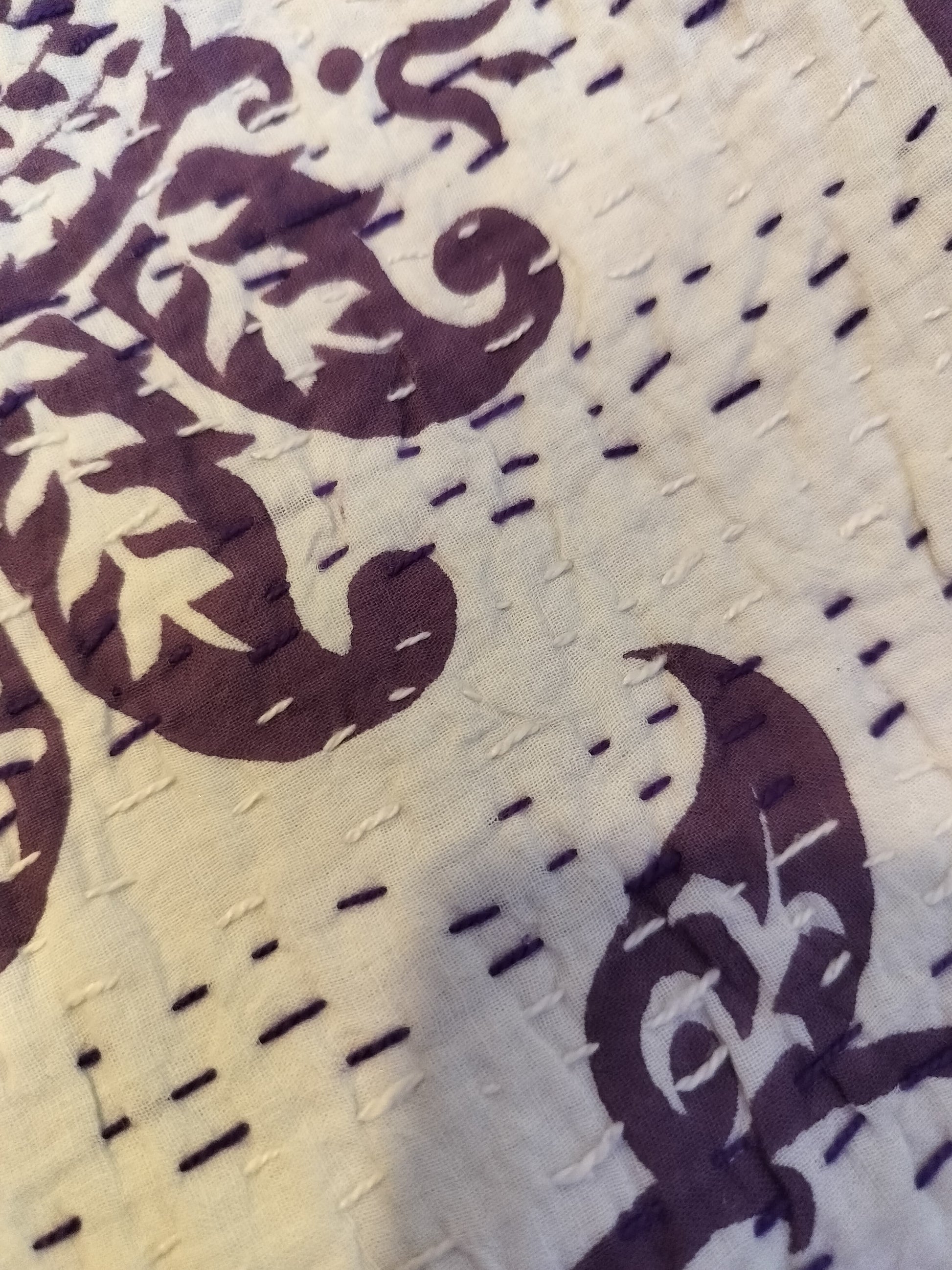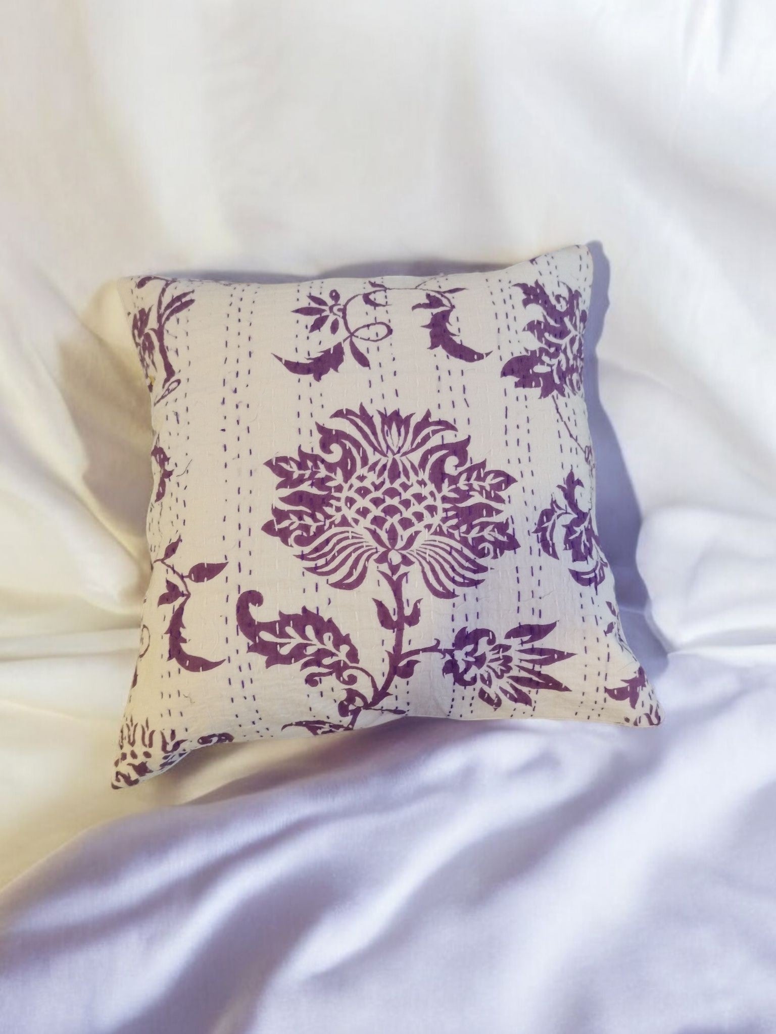 White Kantha Cushion Cover with Purple Flower SET OF 2