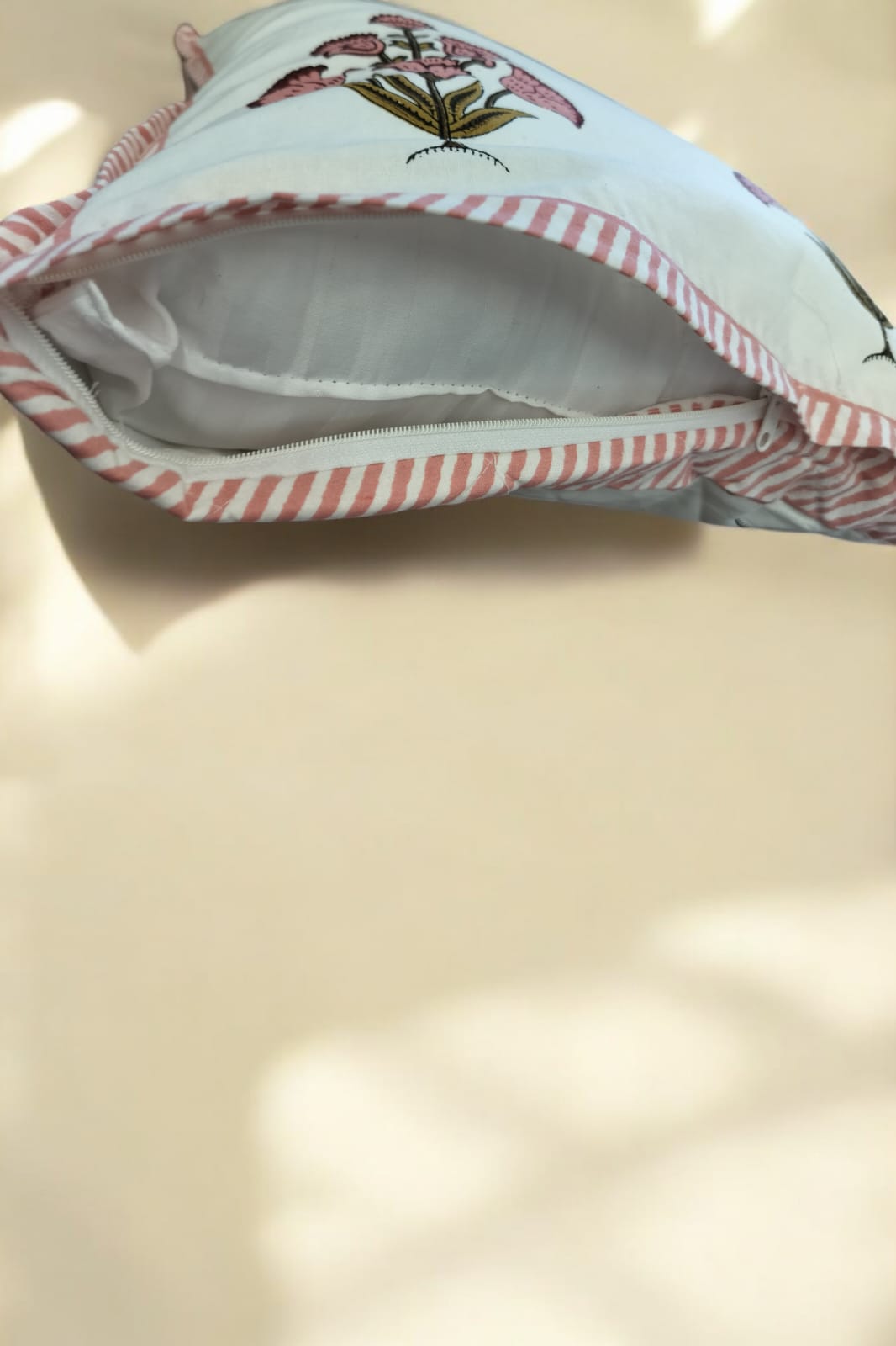 White Peach Floral Quilted Print Cushion Cover set of 2