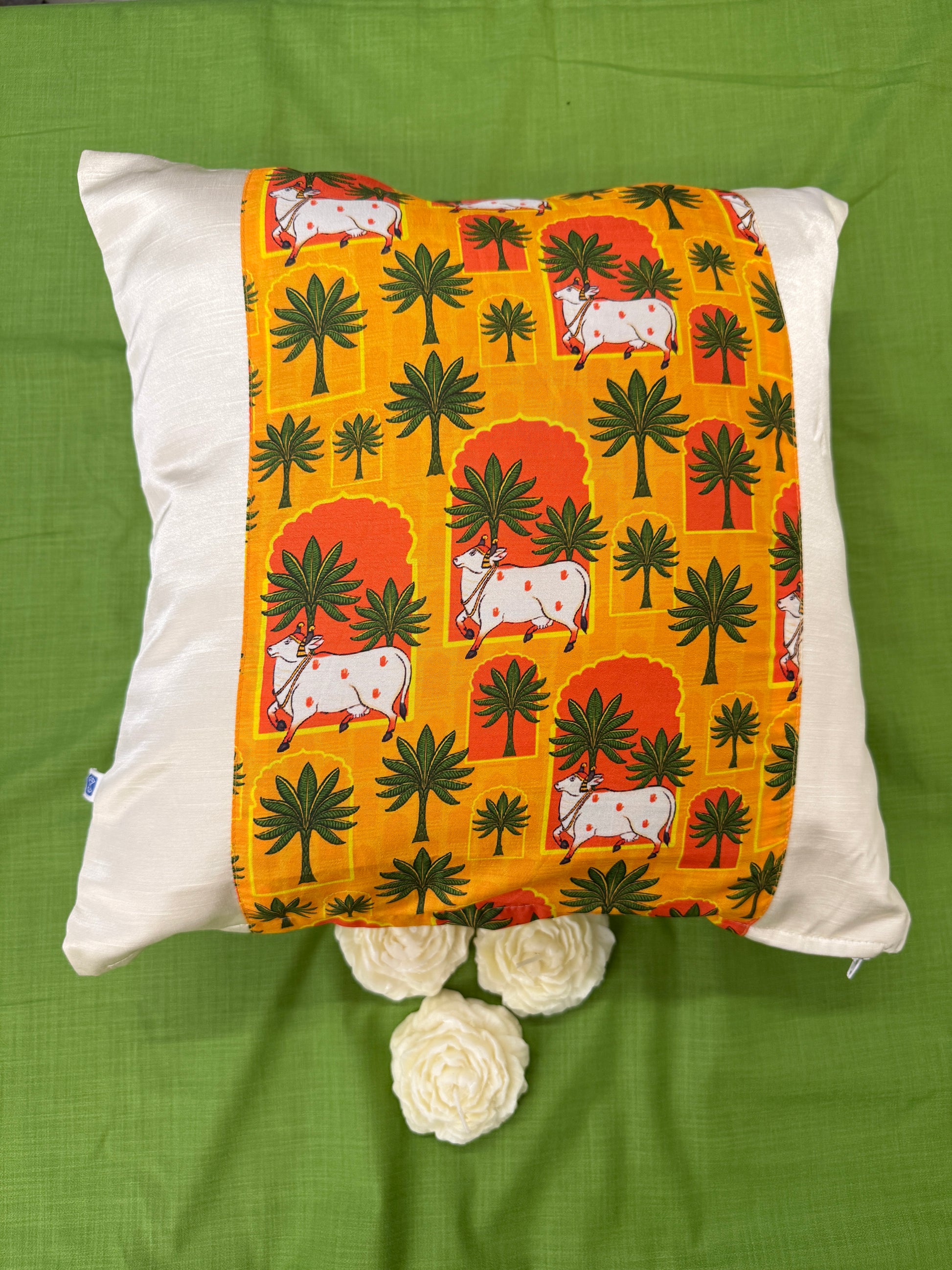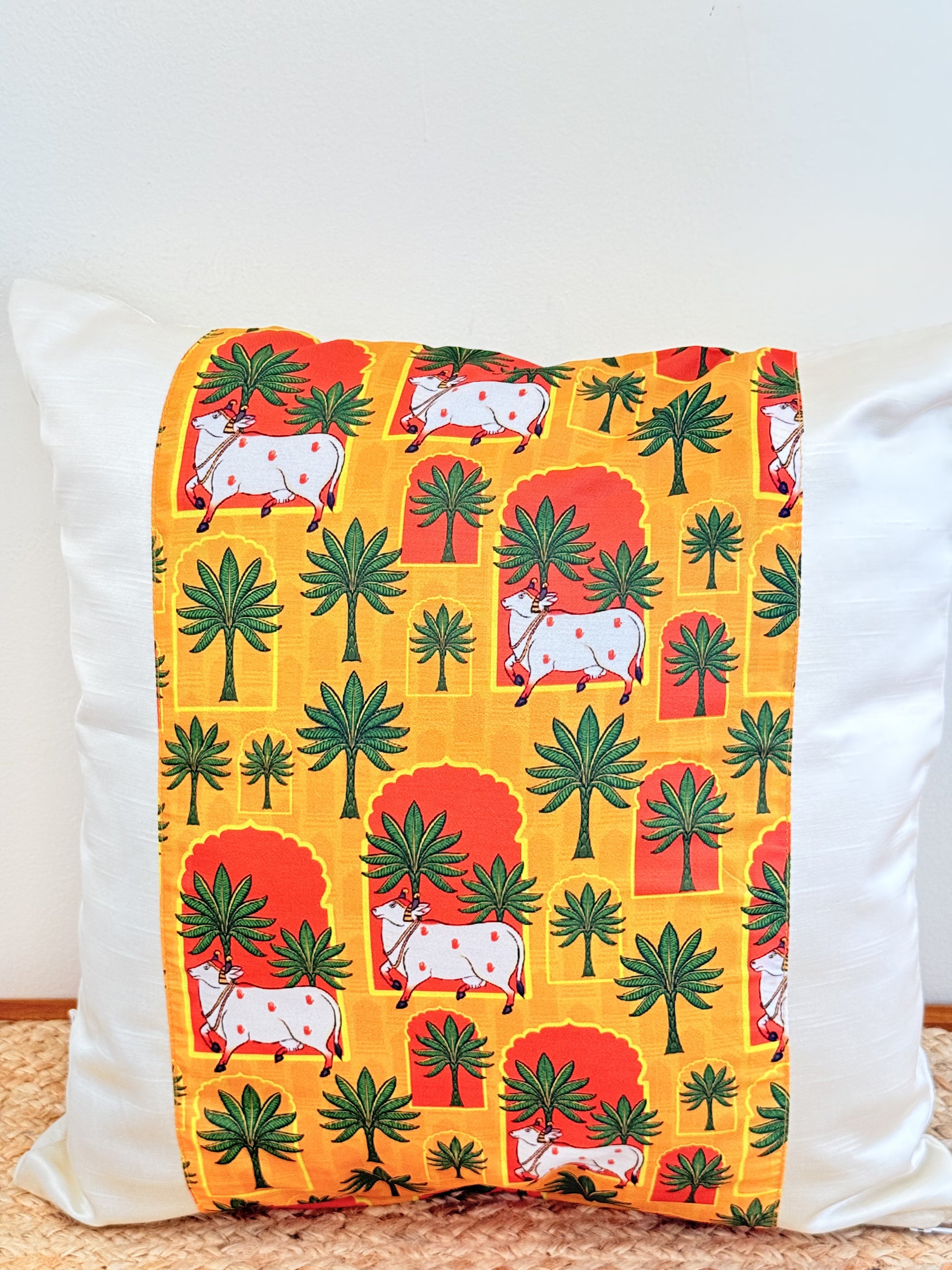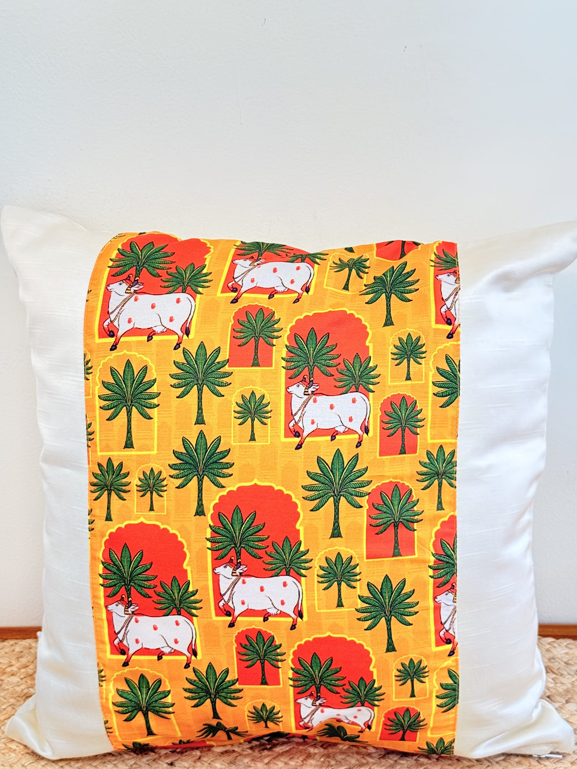 White Satin Yellow Cushion Cover – Luxurious Decorative Pillow for Living Room & Bedroom Decor