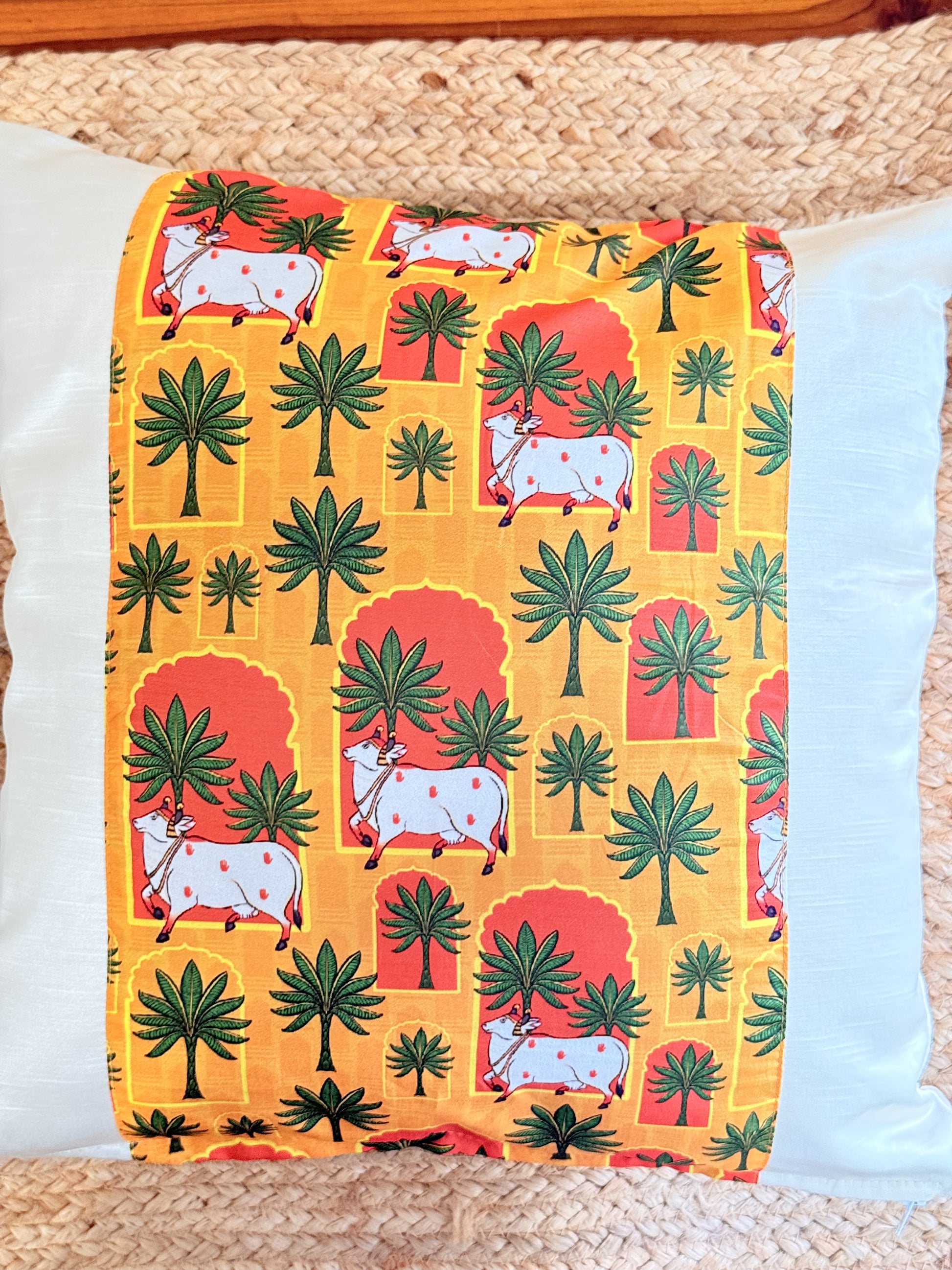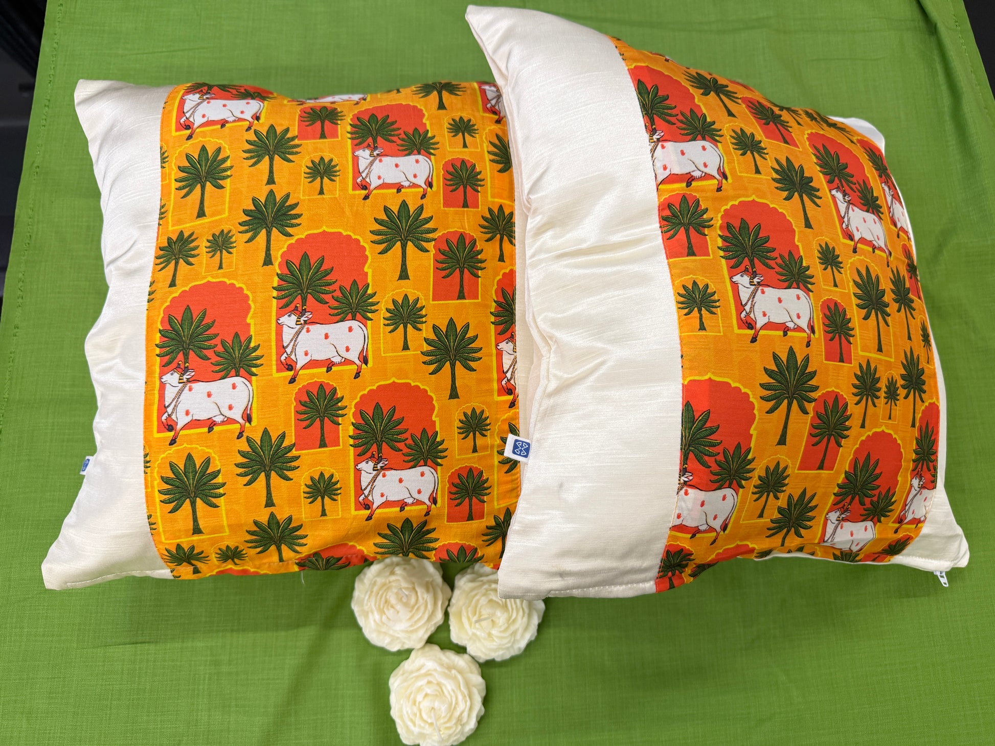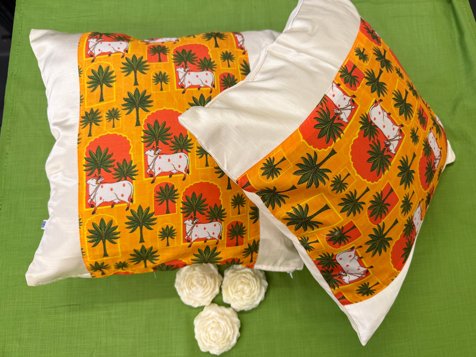 White Satin Yellow Cushion Cover – Luxurious Decorative Pillow for Living Room & Bedroom Decor