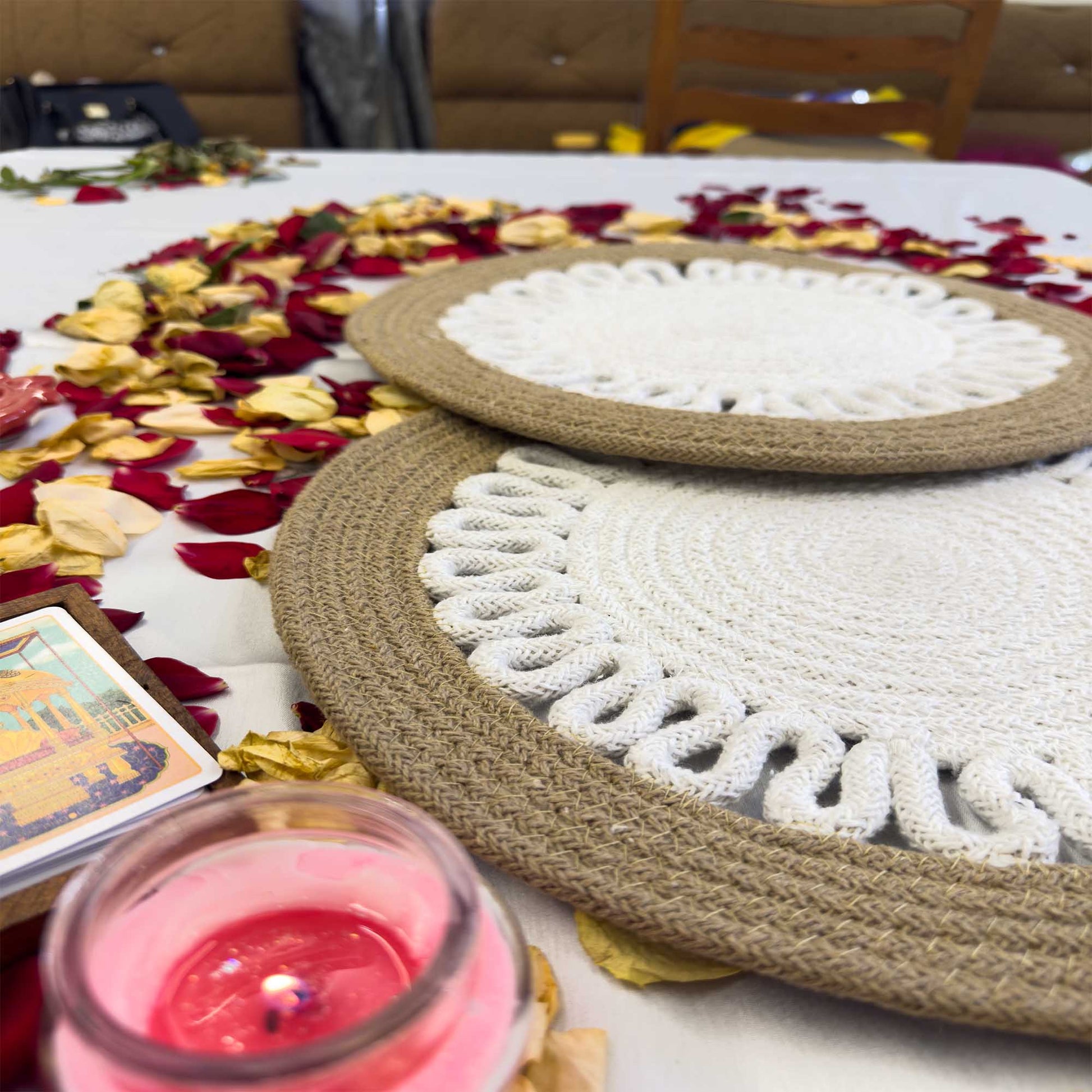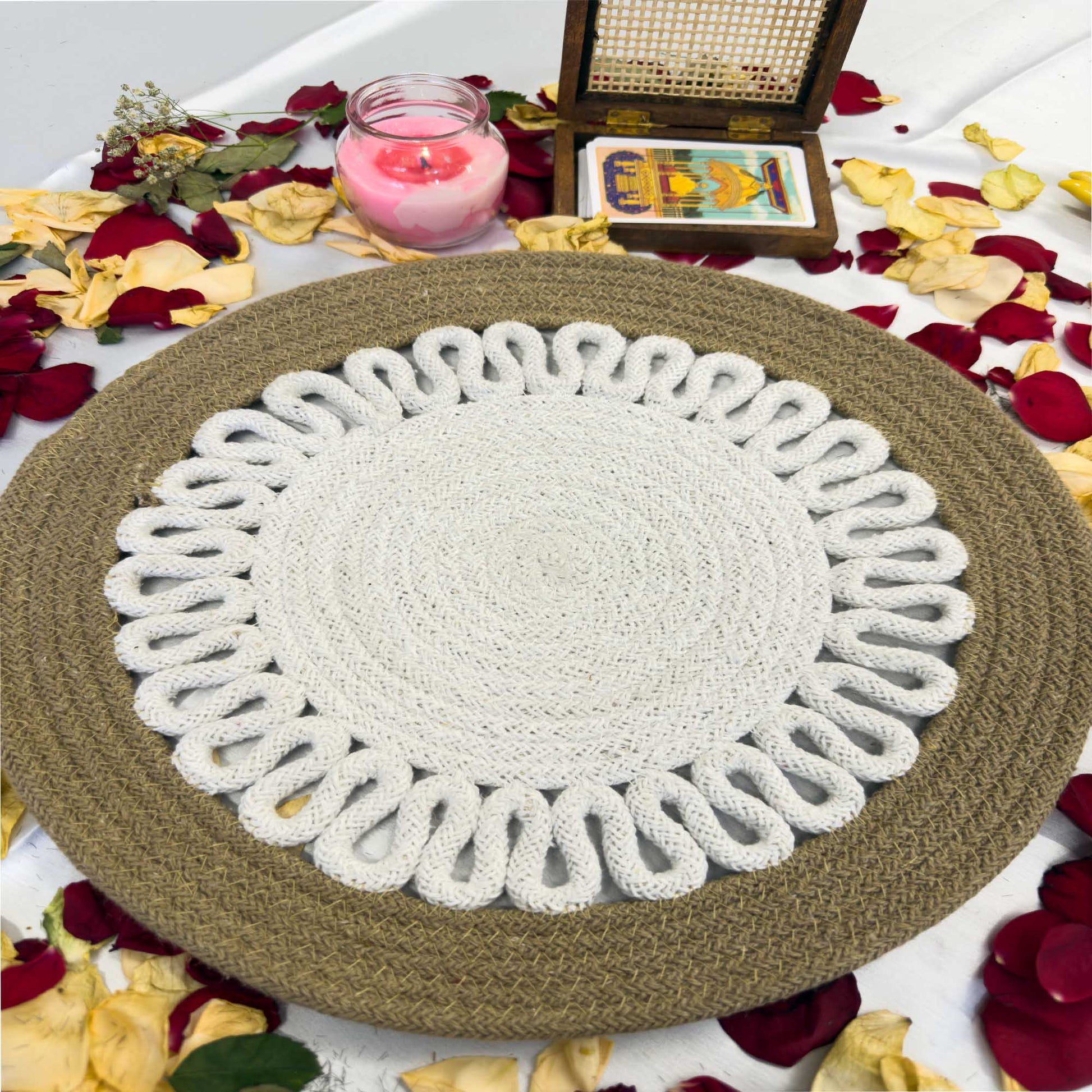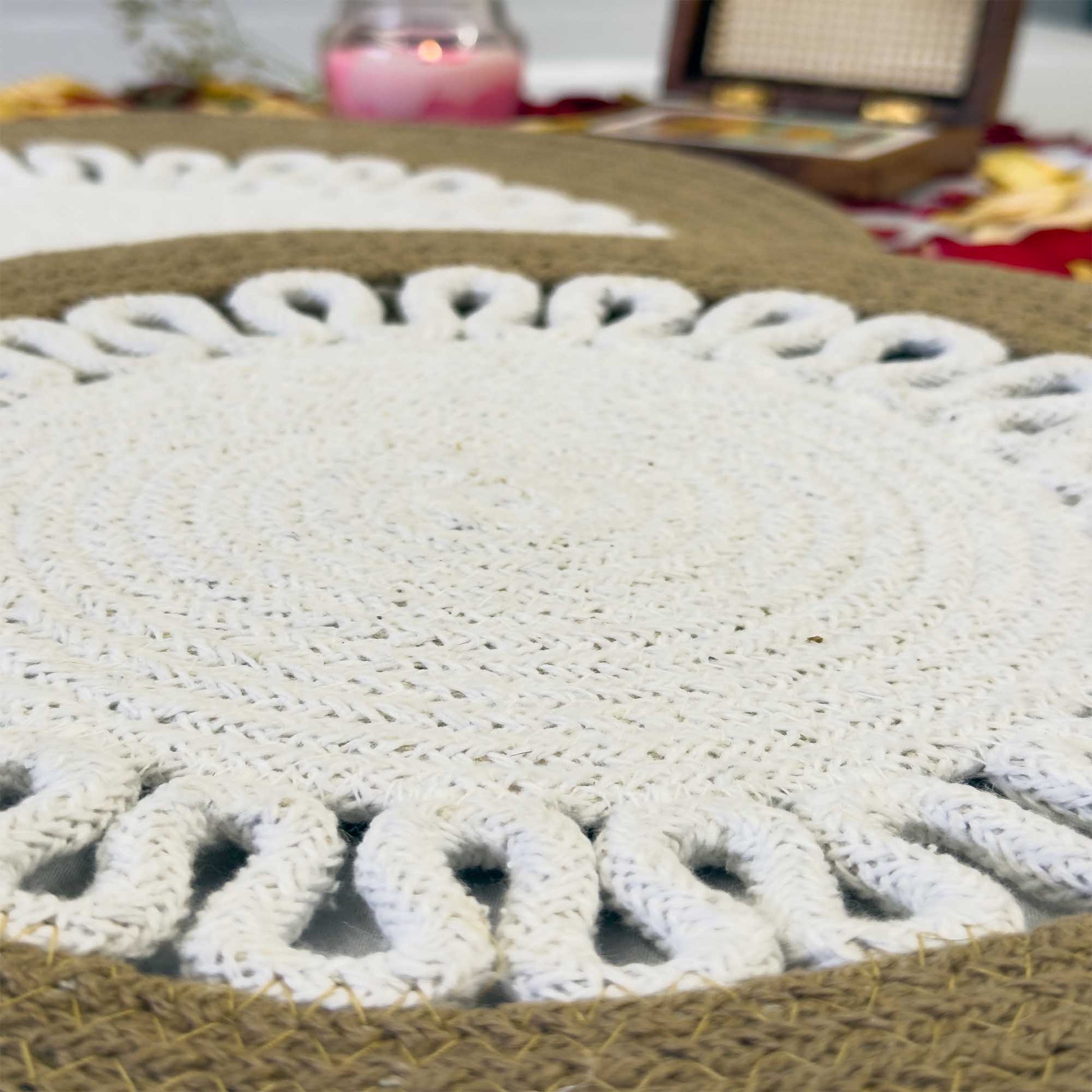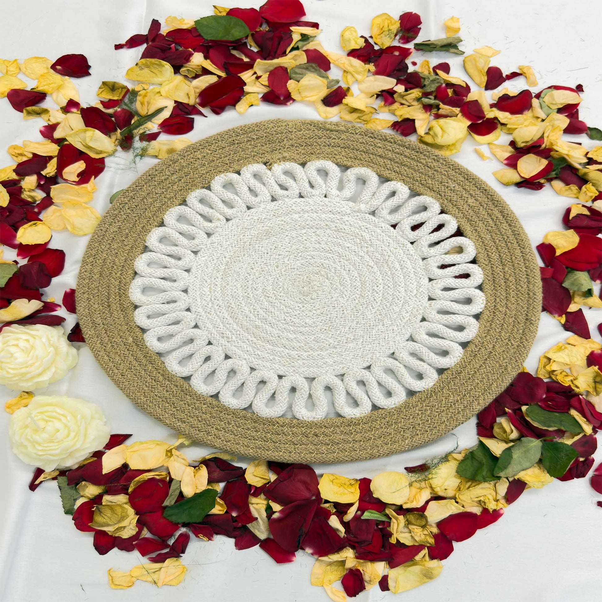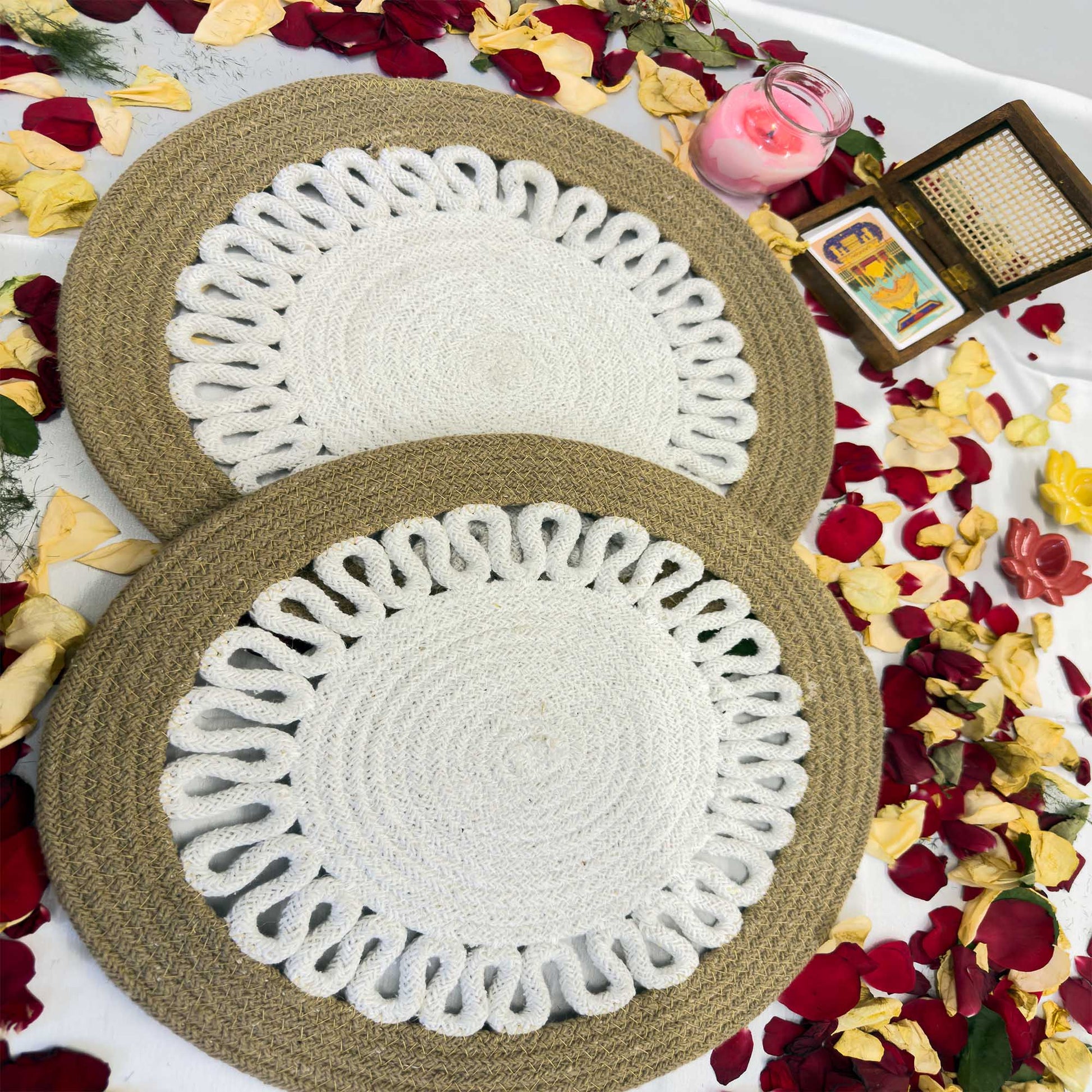 White Centered Flower Jute Table Placemat (Pack of 2) – Eco-Friendly and Stylish
