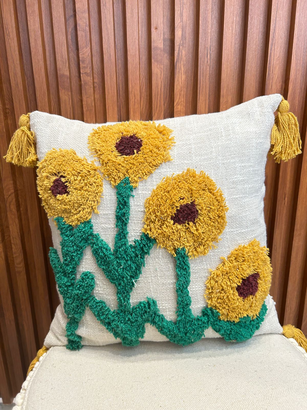 Add some drama to your home decor with our amazing Floral Embroidery Cushion Cover. This royal cushion cover features bright green and yellow tufted work, which gives it a very sophisticated look in any room. Elevate your living space with this superior, eye-catching accessory.