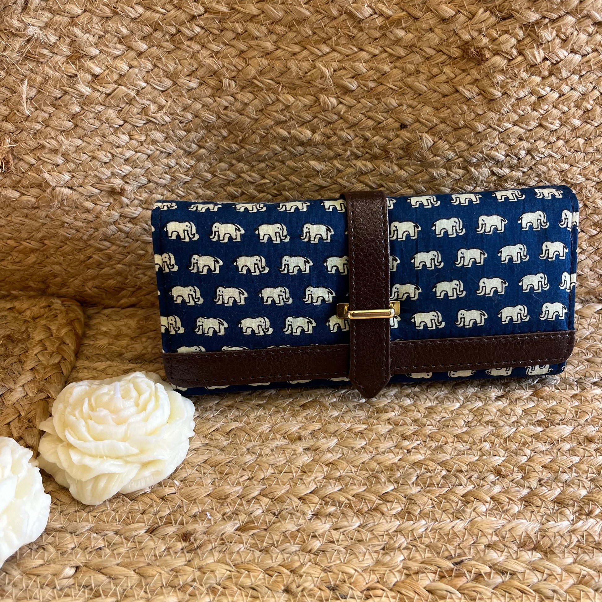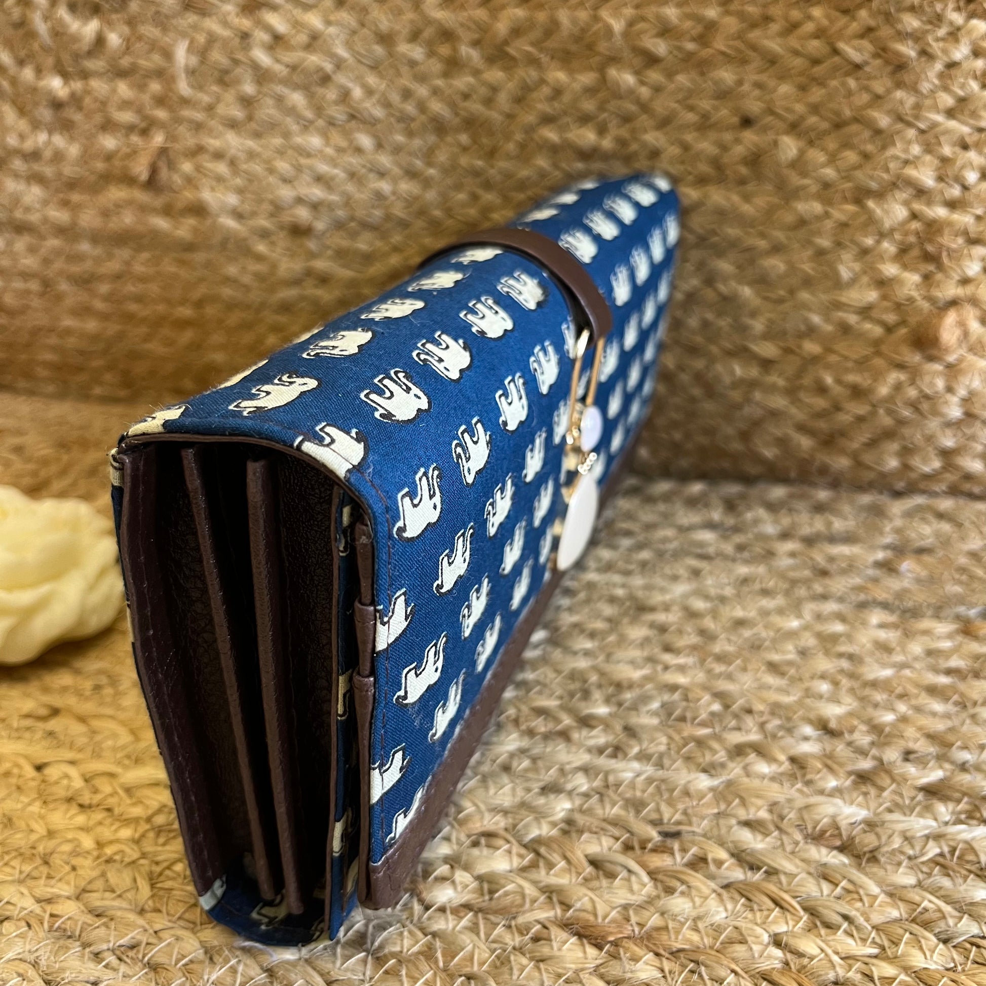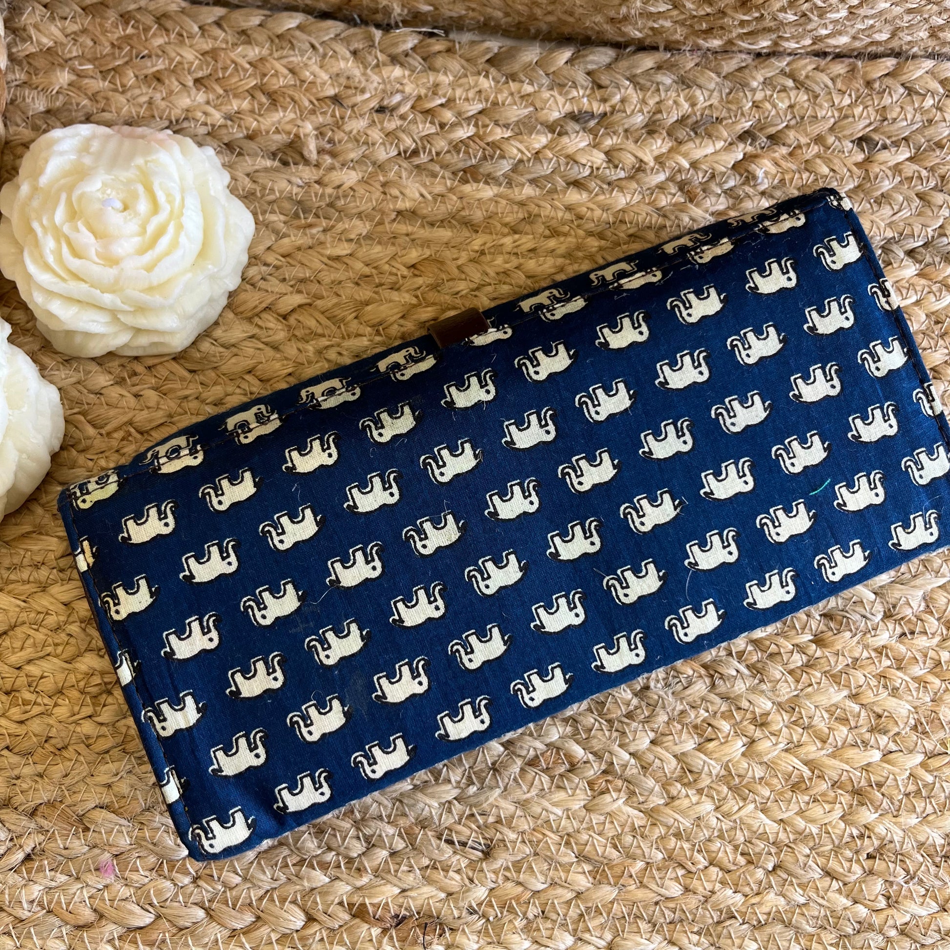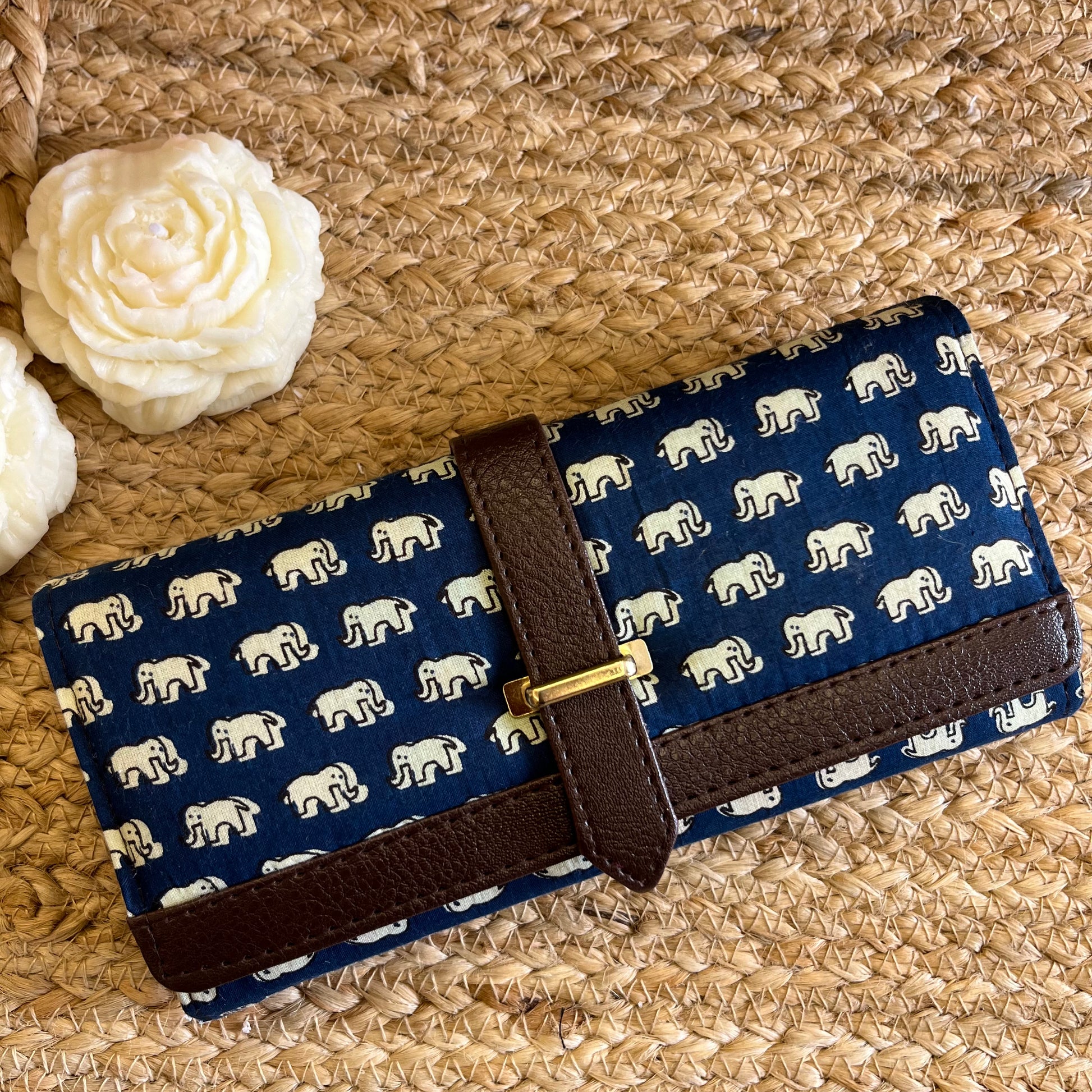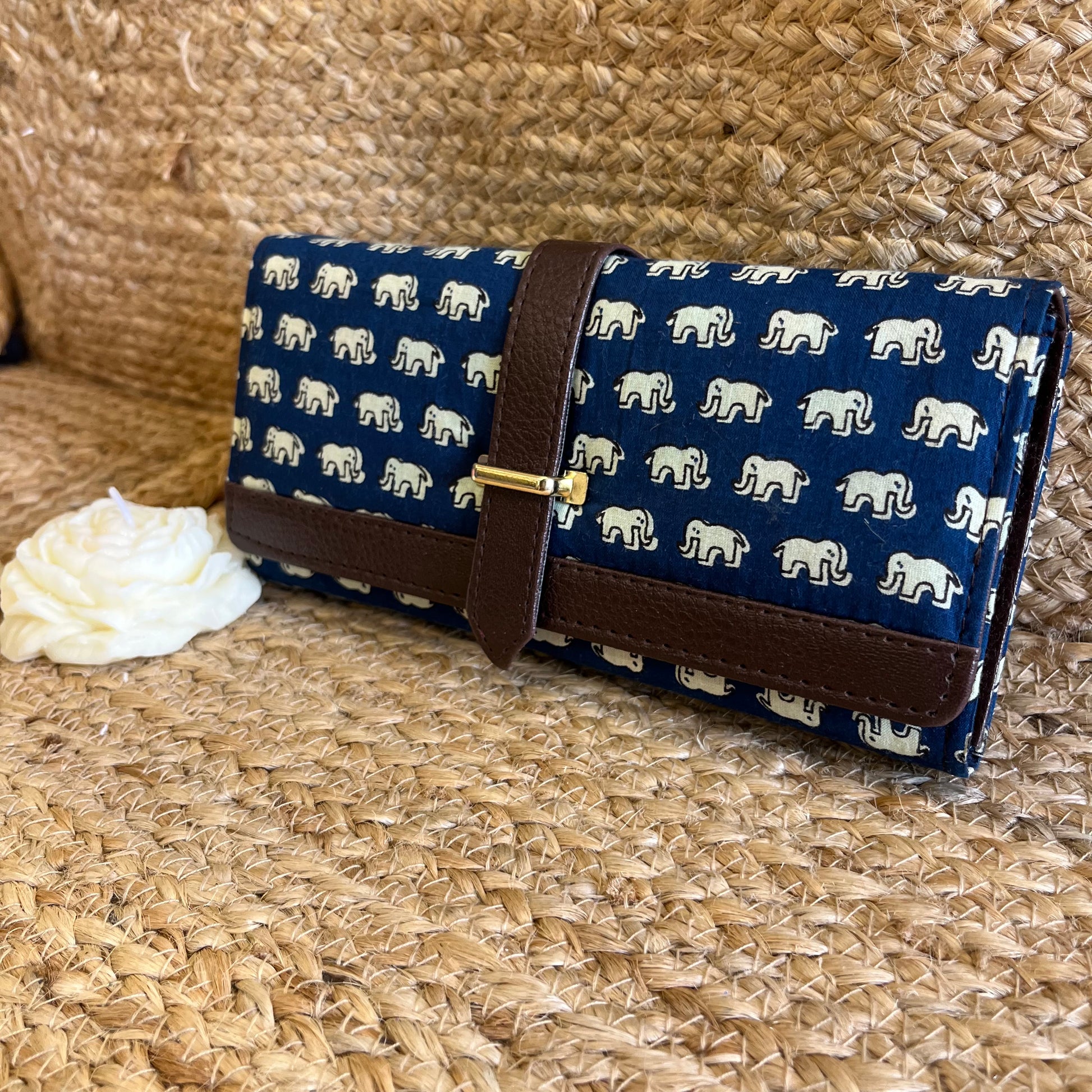 Women Blue Elephant Ethnic Handblock Printed Vegan Leather Wallet