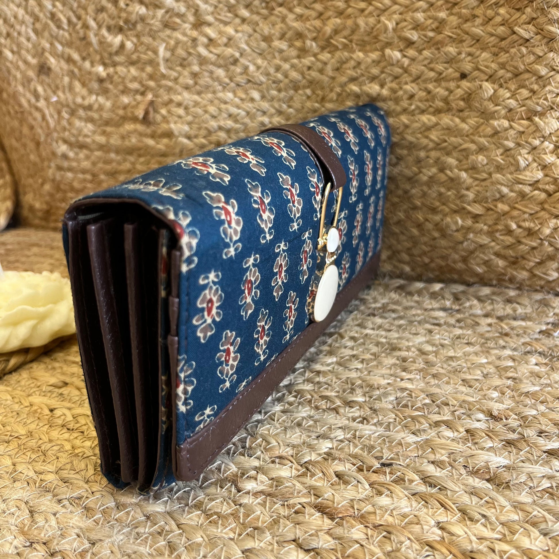 Women Blue Ethnic Handblock Printed Vegan Leather Wallet