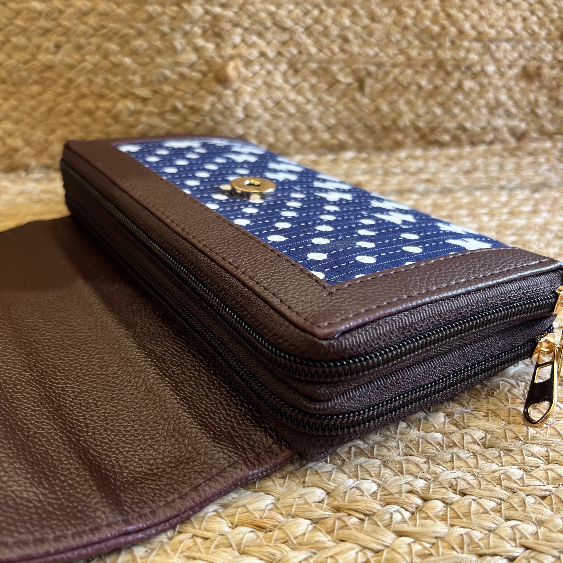 Women Dark Blue Ethnic Handblock Printed Zip Around Vegan Leather Wallet