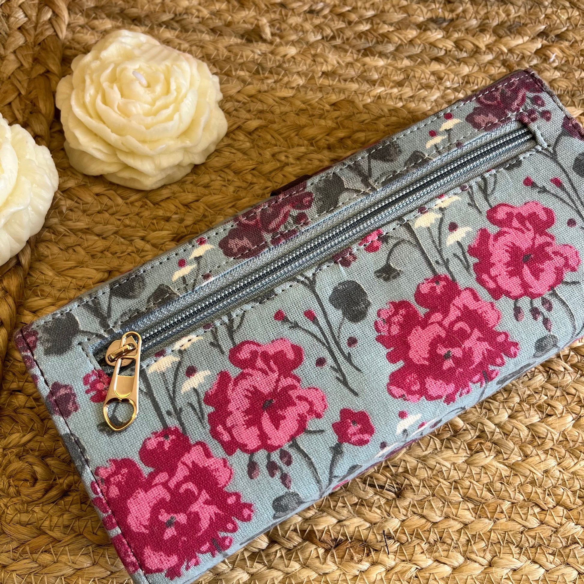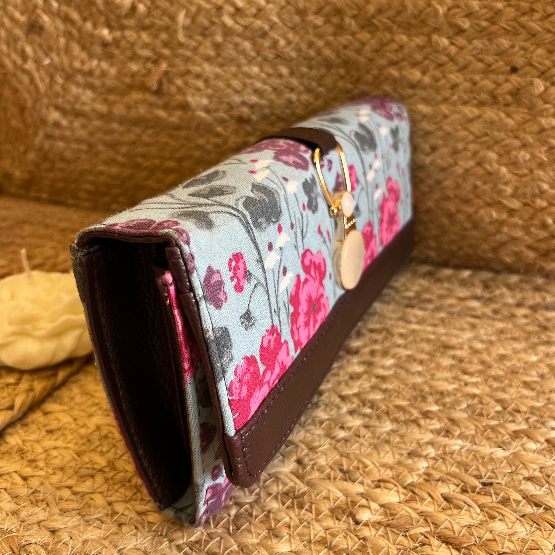 Women Pink Floral Handblock Printed Vegan Leather Wallet