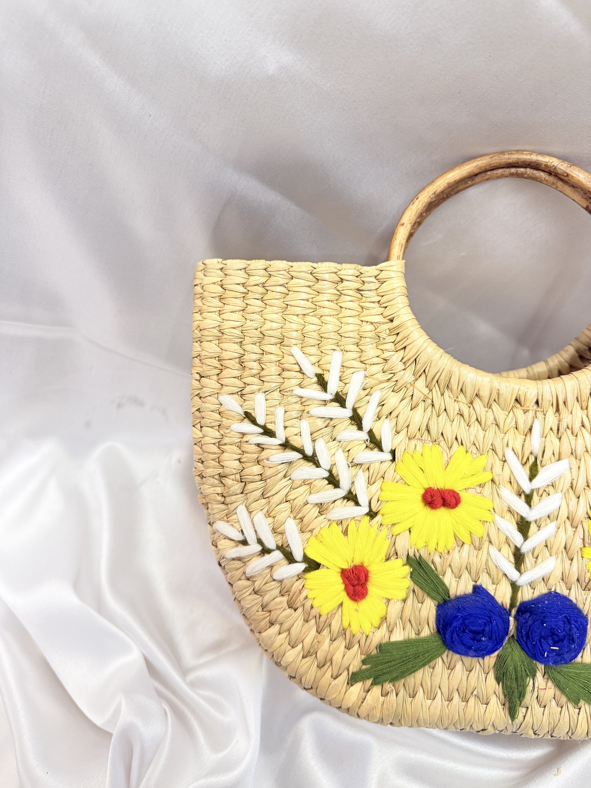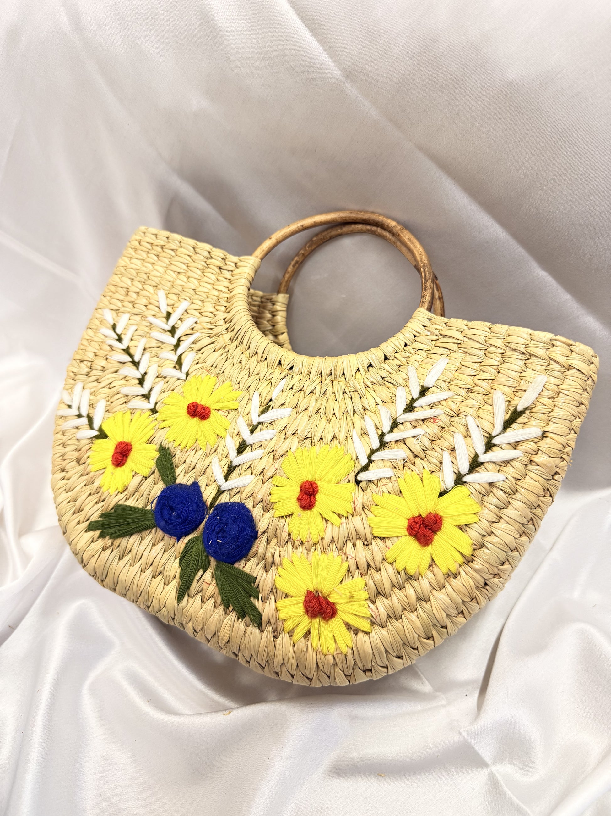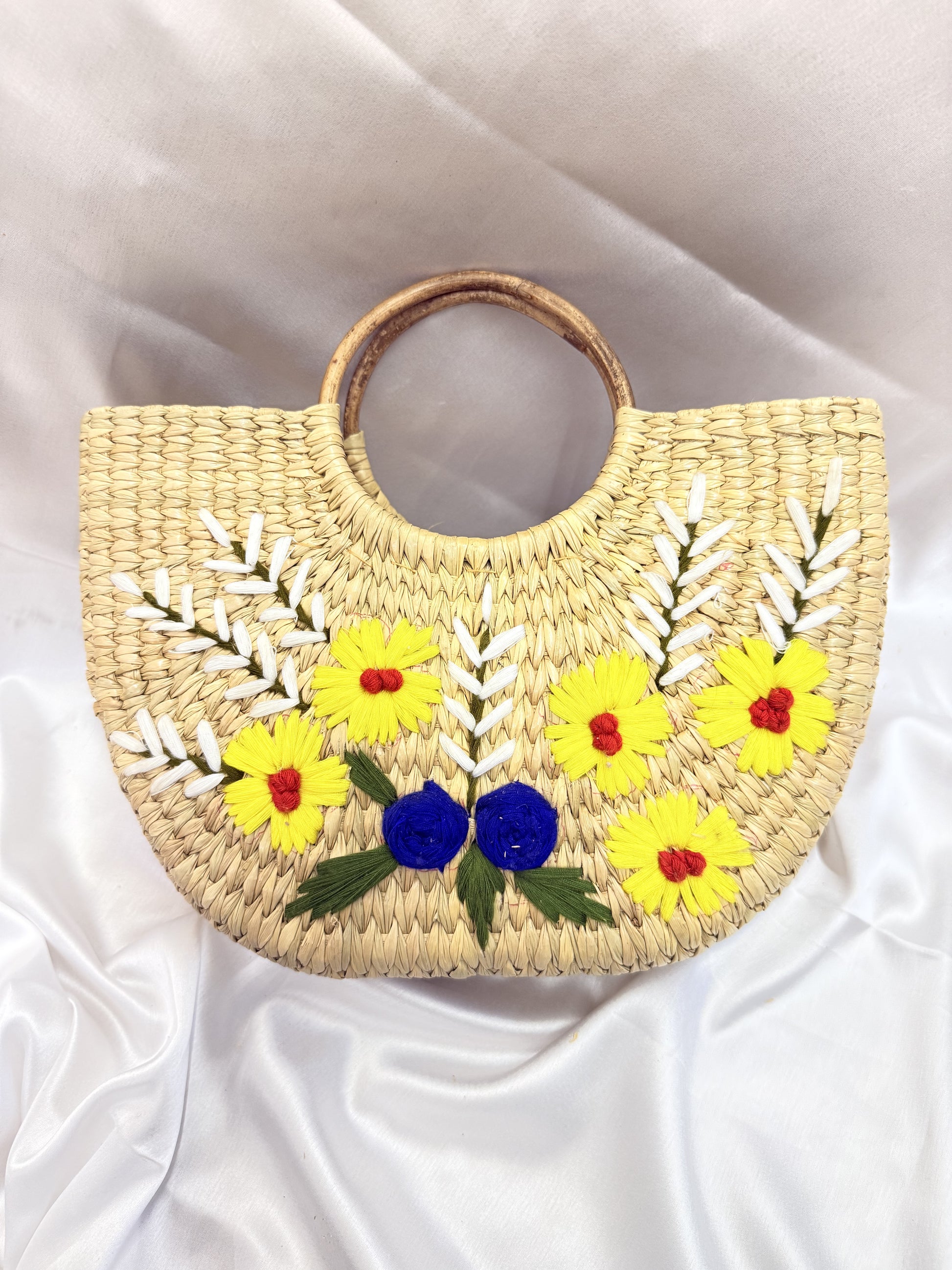 Yellow White Daisy U-Shaped kauna Embroidery Bag