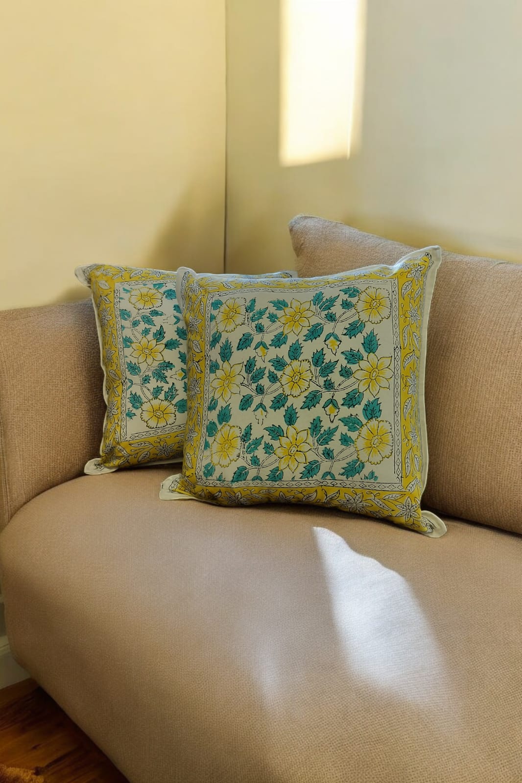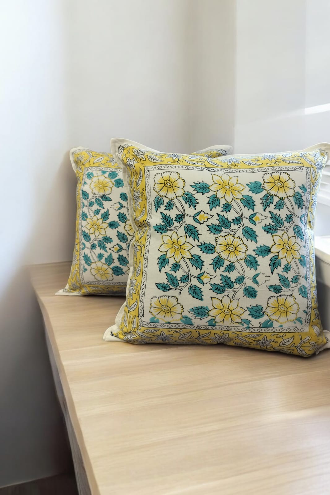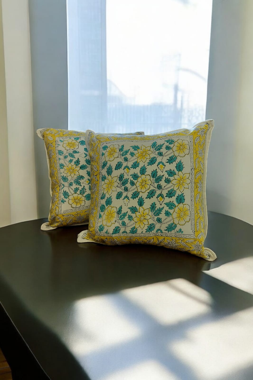 - 16*16 Cotton Quilted Hand block Cushion Covers