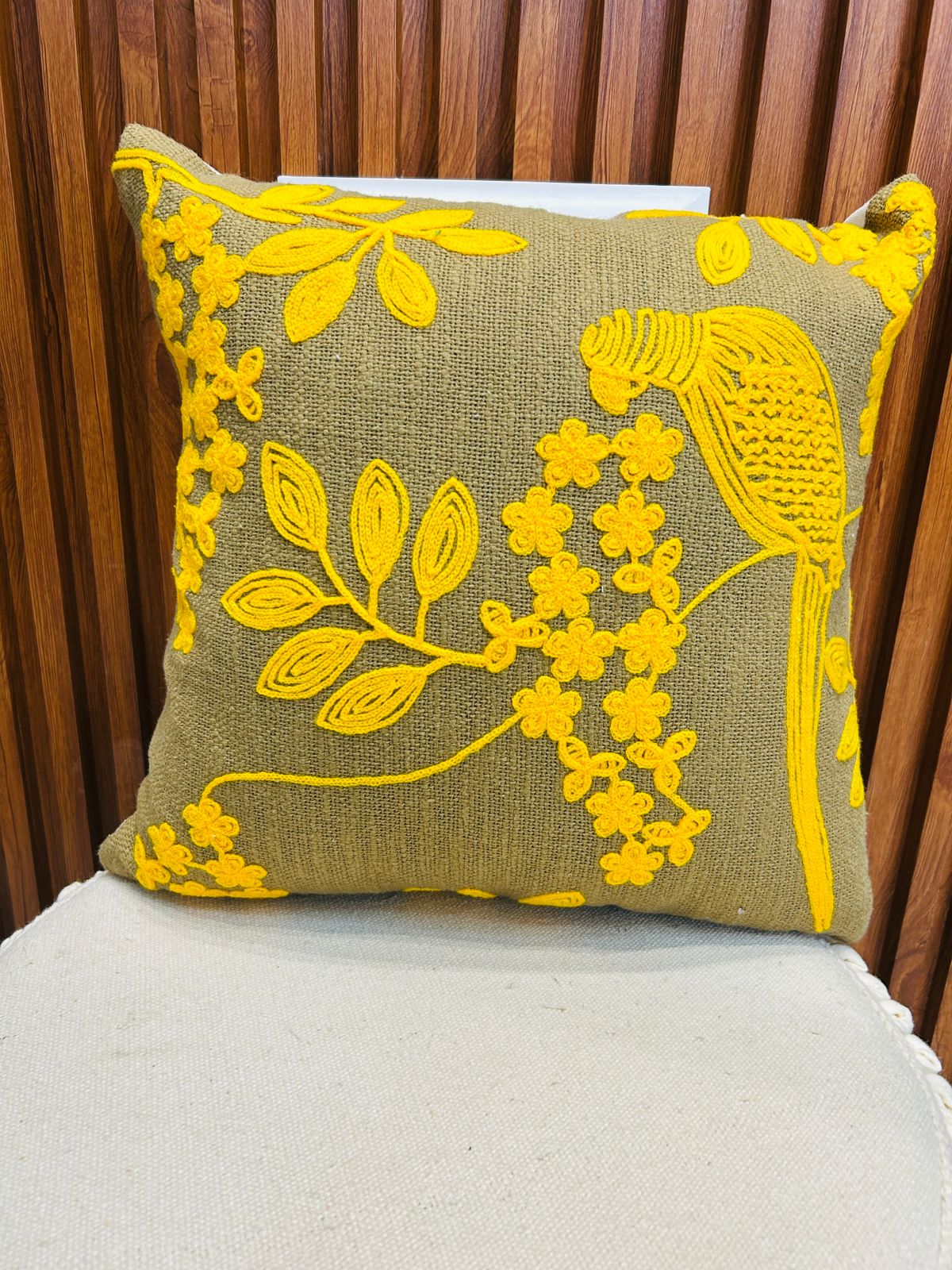Add some drama to your home decor with our amazing Floral Embroidery Cushion Cover. This royal cushion cover features bright green and yellow tufted work, which gives it a very sophisticated look in any room. Elevate your living space with this superior, eye-catching accessory.