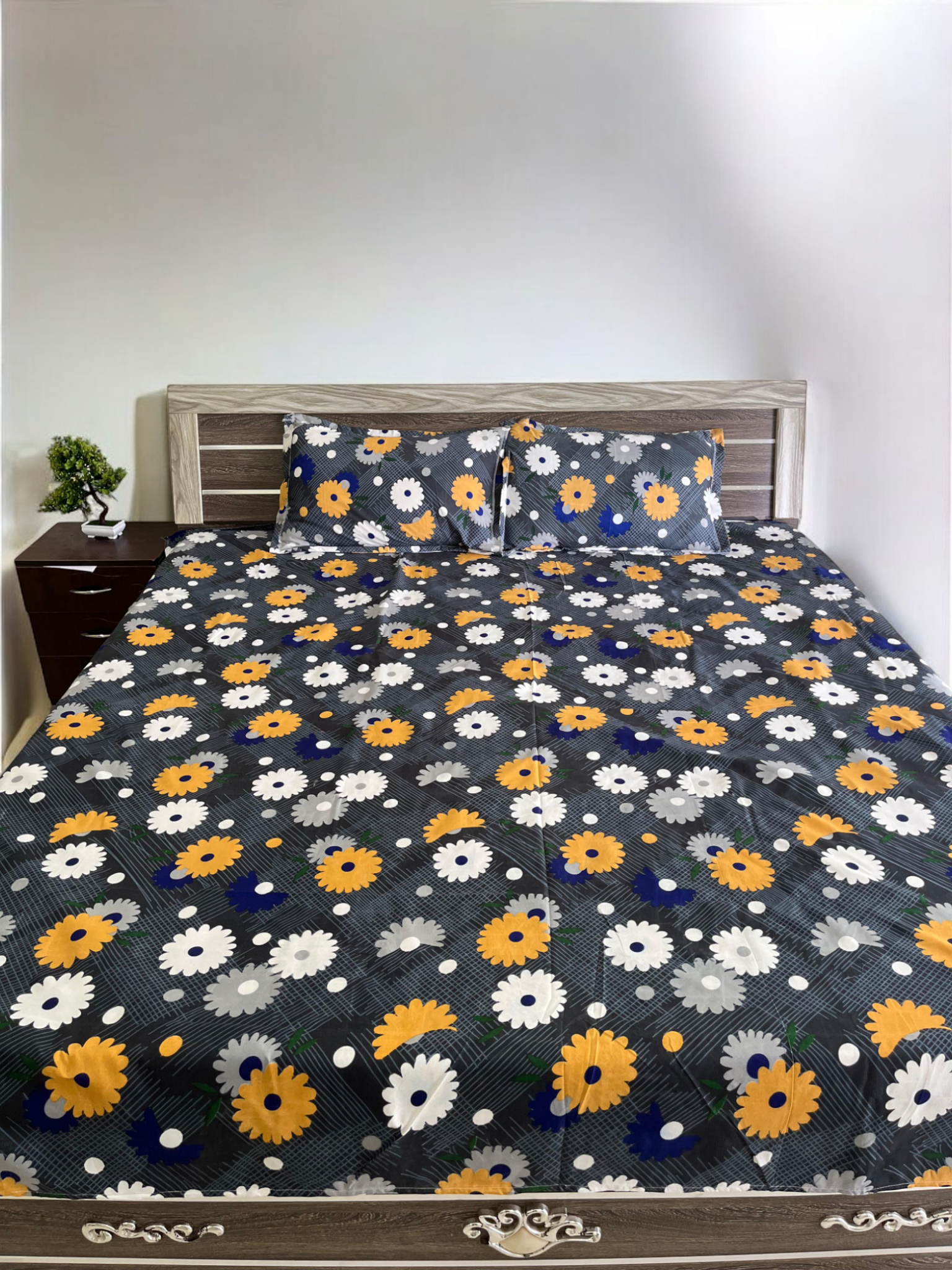 Yellow Floral Double Bedsheet with 2 Pillow Cover