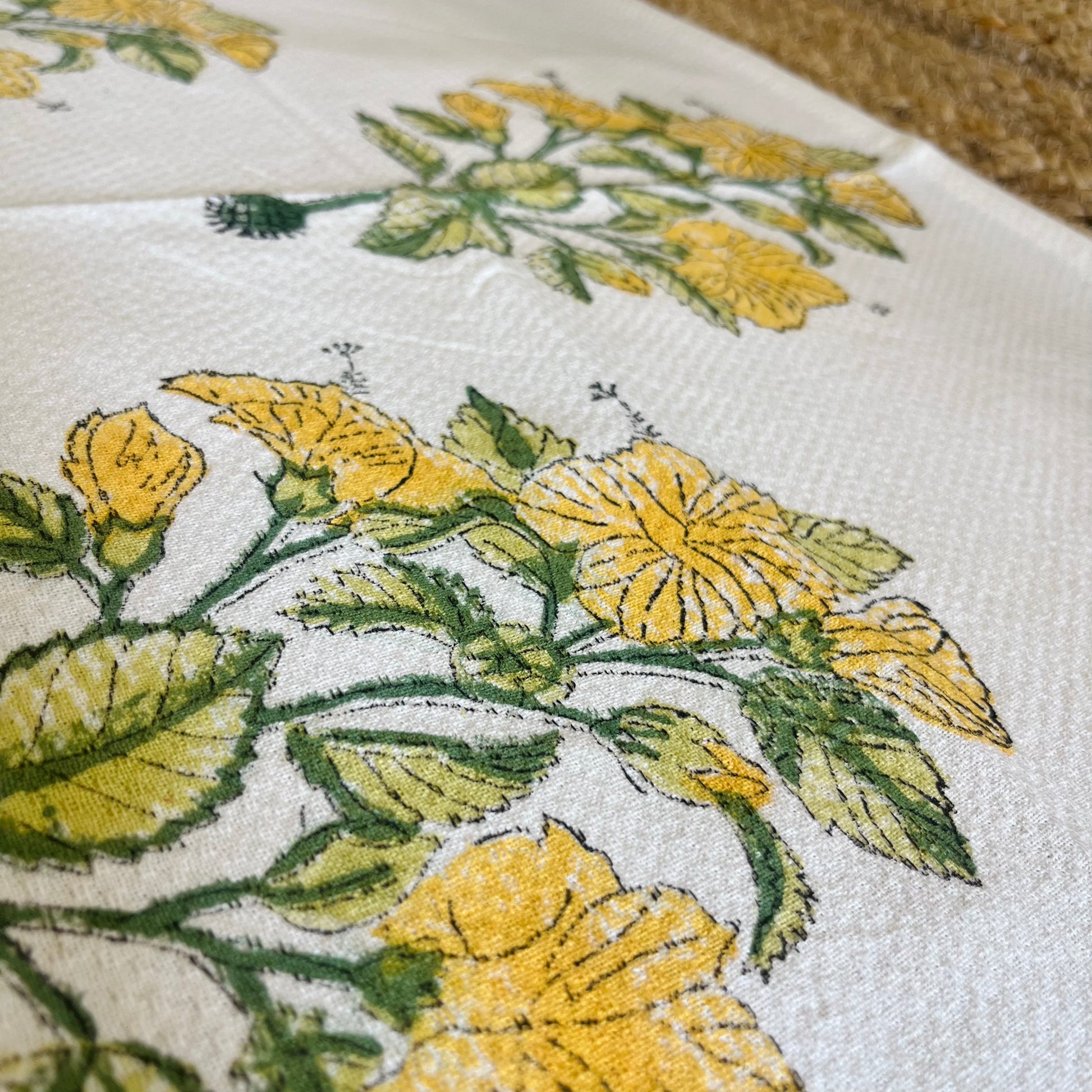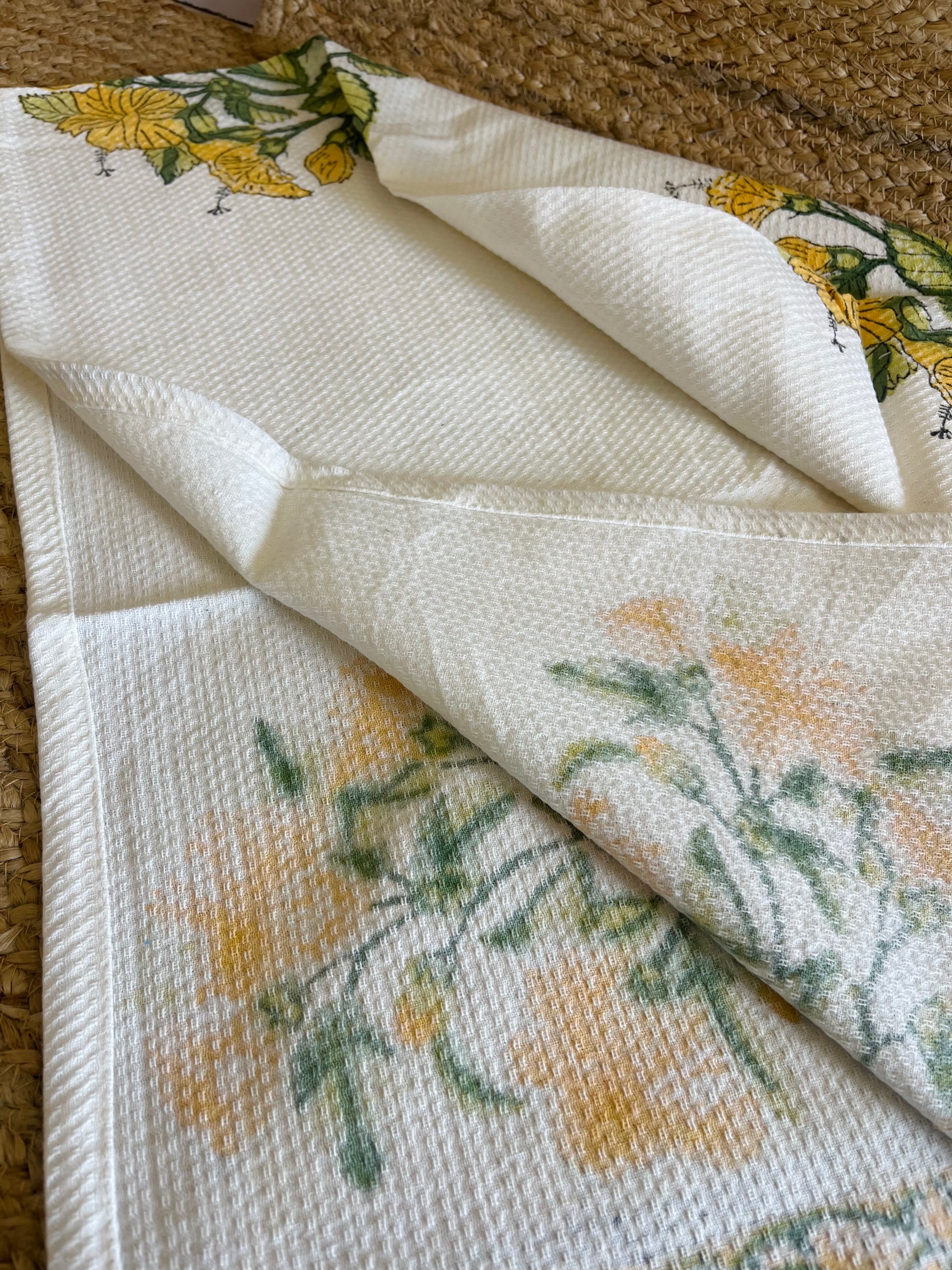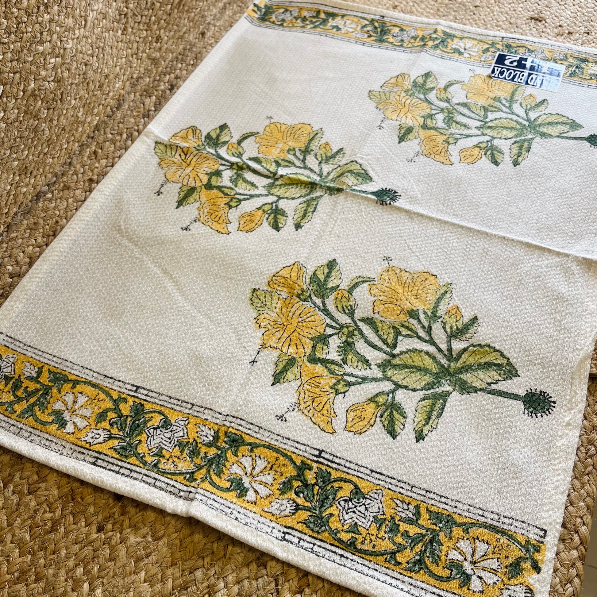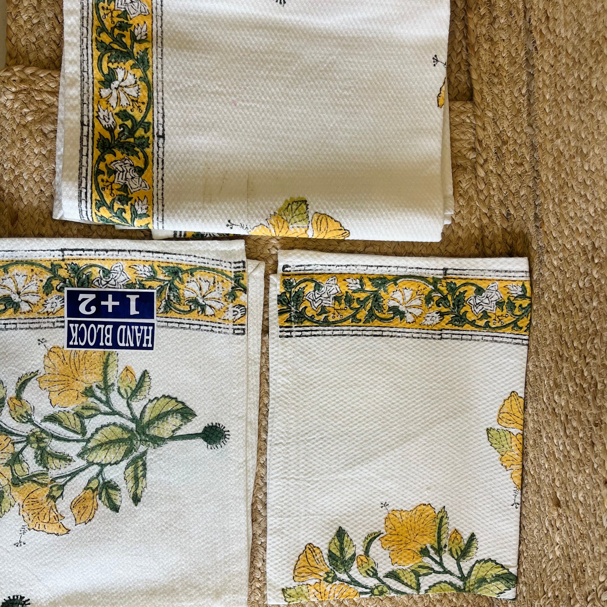 Yellow Floral Handblock Waffle Cotton Towel Set