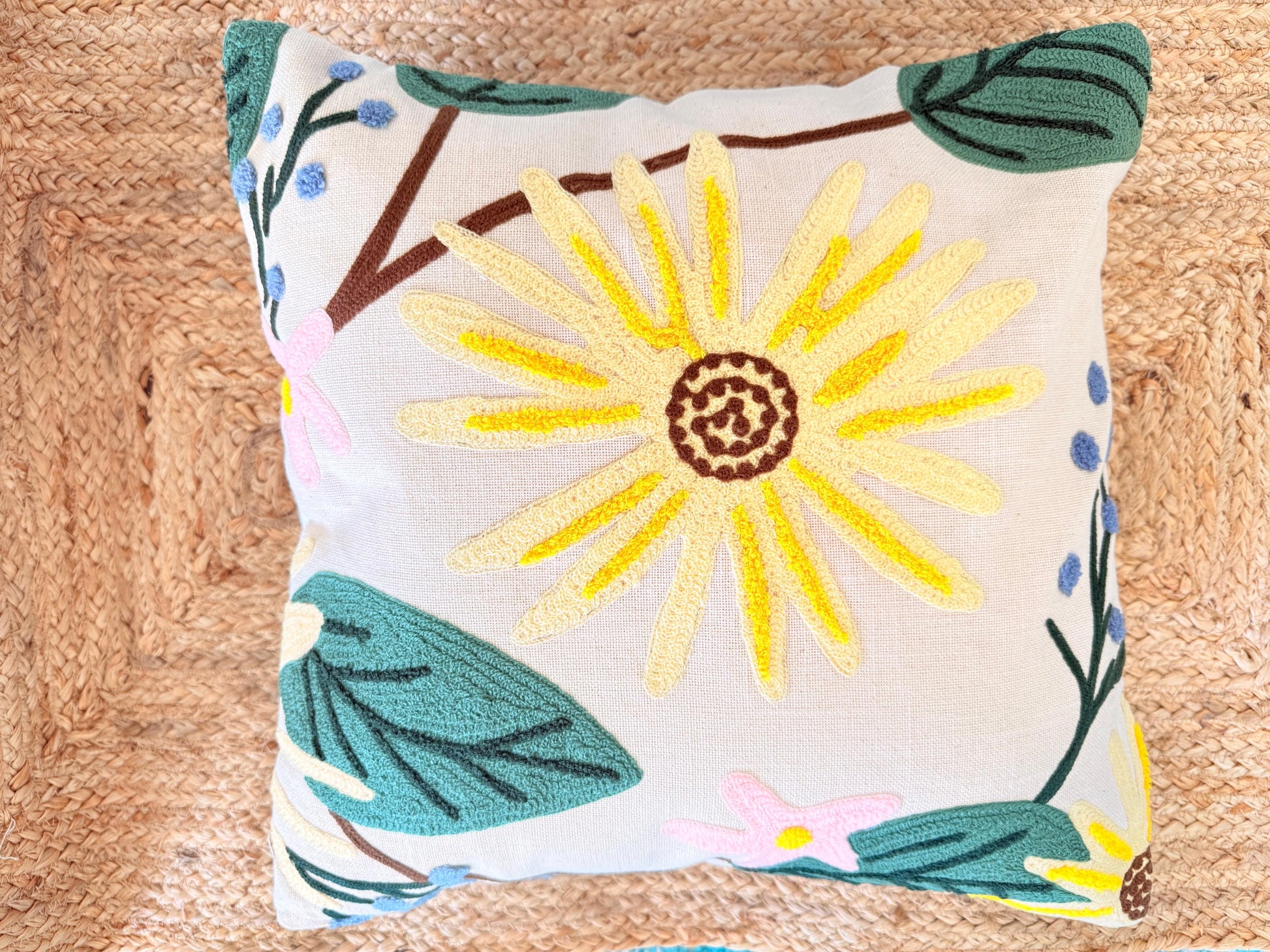 Elevate your home décor with the Yellow Flower Embroidery Decorative Cushion Cover, crafted from premium jute fabric for a rustic yet elegant touch. Featuring intricate yellow flower embroidery, this cushion cover is perfect for adding a natural and stylish accent to your living room, bedroom, or lounge. The durable and eco-friendly jute material ensures long-lasting quality, while the vibrant floral design adds warmth and charm to any interior space.