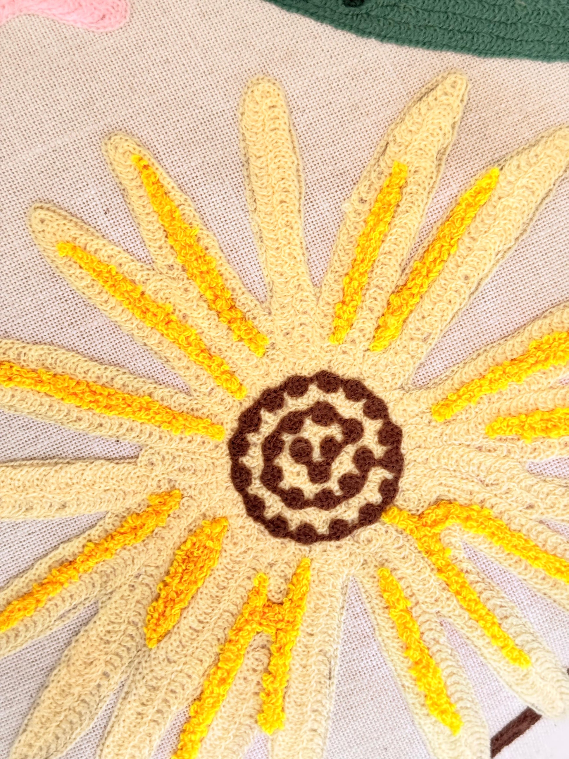 - Elegant Floral Embroidery – Handcrafted yellow flower design for a chic and artistic aesthetic.
