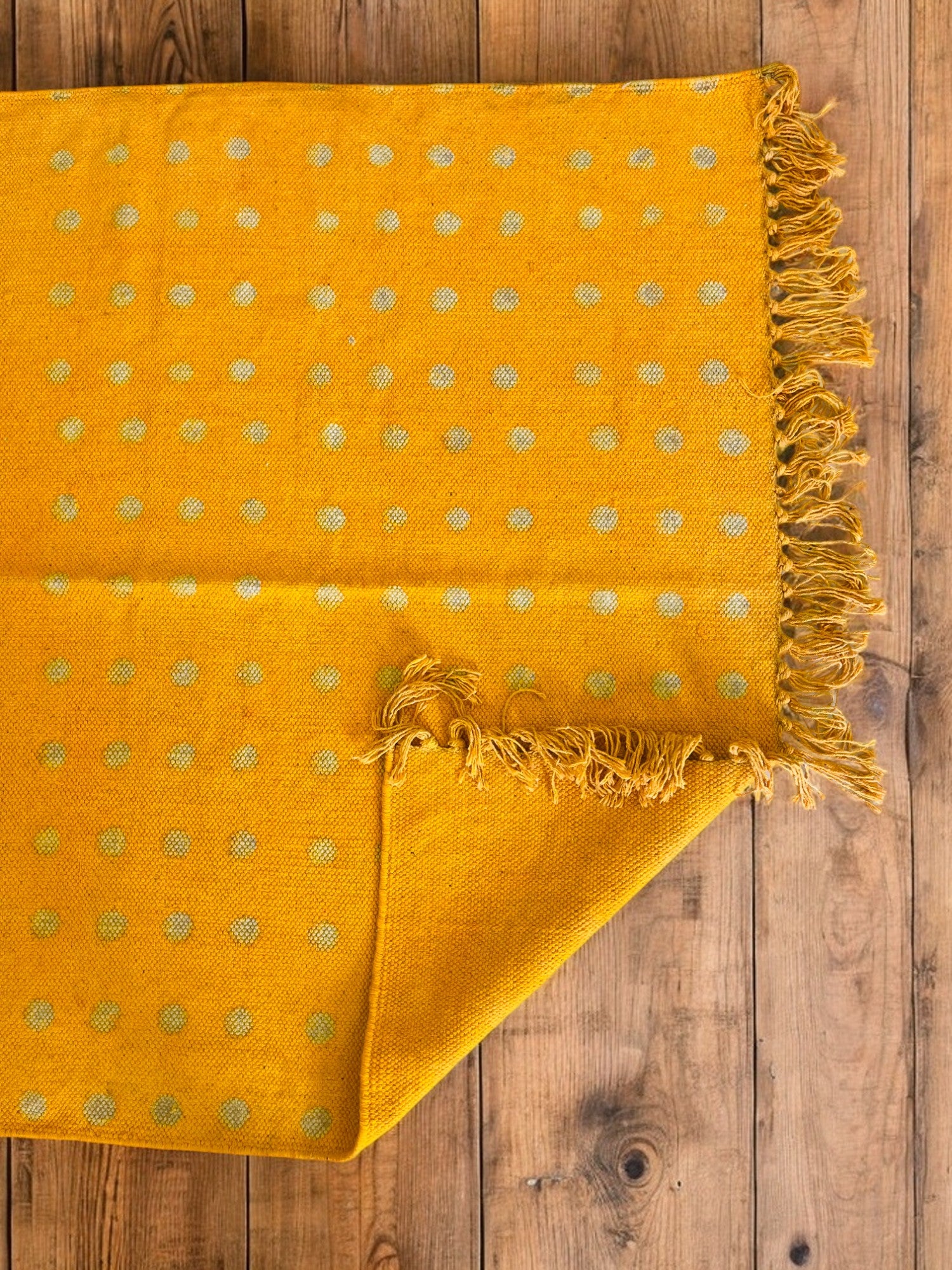 Yellow Handblock Print Cotton Rug