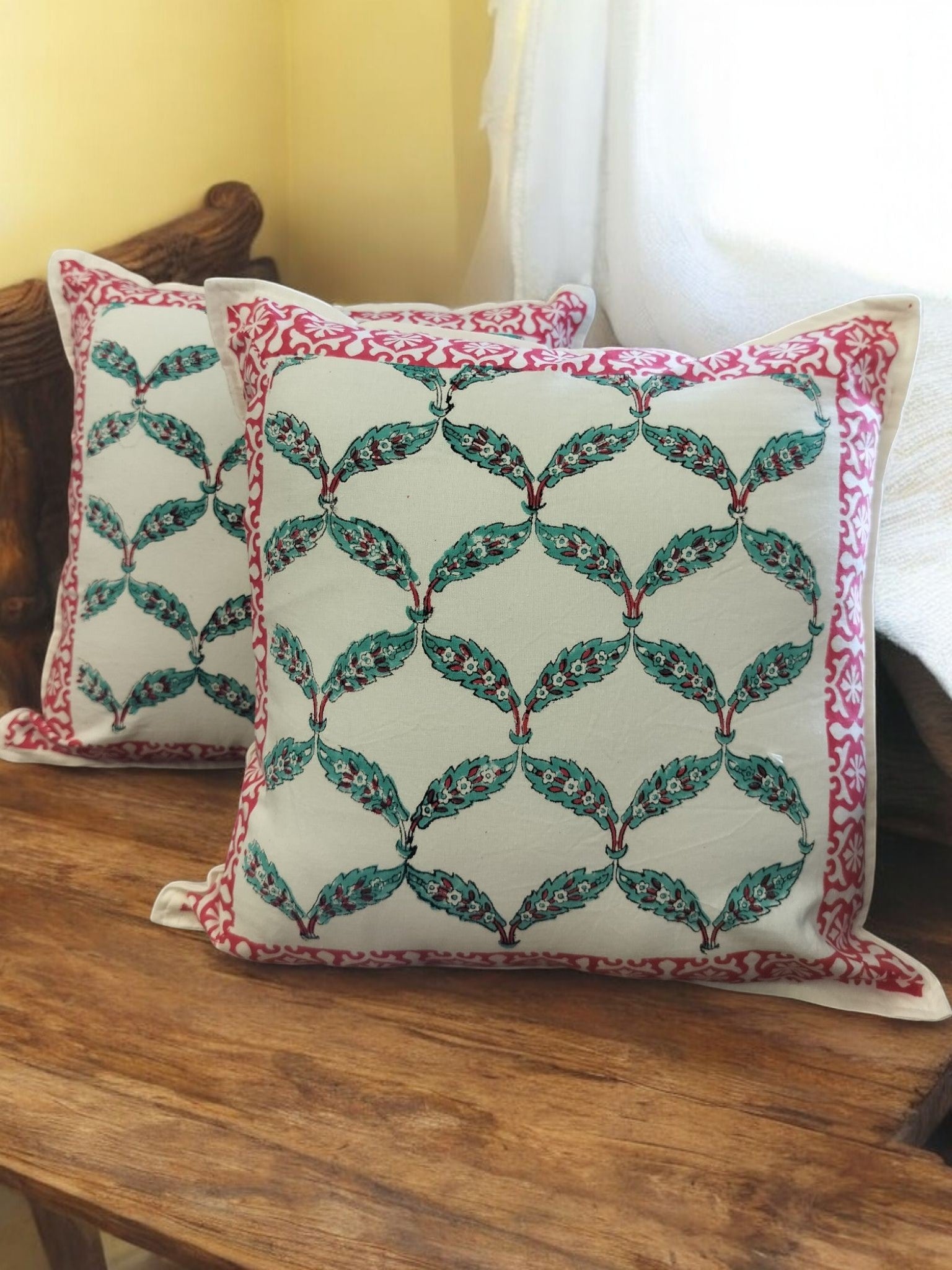 Add a vibrant touch to your home with the Green and Pink Handblock Cushion Covers (Set of 2). These beautiful cushion covers are made from high-quality fabric featuring an intricate handblock print in shades of green and pink. The traditional hand block technique adds a unique, artisanal flair, perfect for enhancing the décor of any living room, bedroom, or office. These covers not only bring color and style to your space but also provide comfort and durability.
